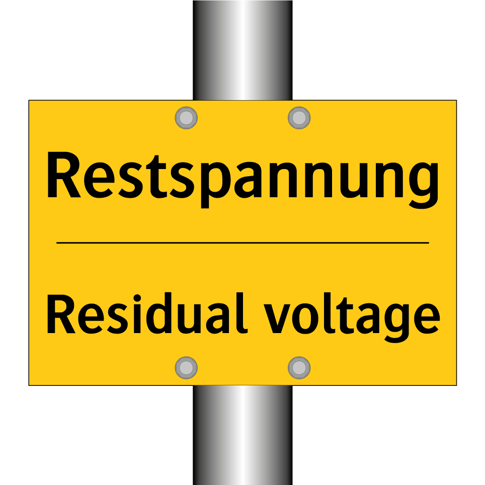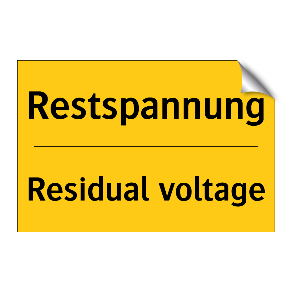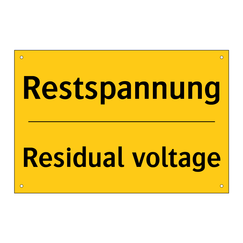 Zweisprachiges Warnschild mit deutschem Text Restspannung und englischem Text Residual voltage
