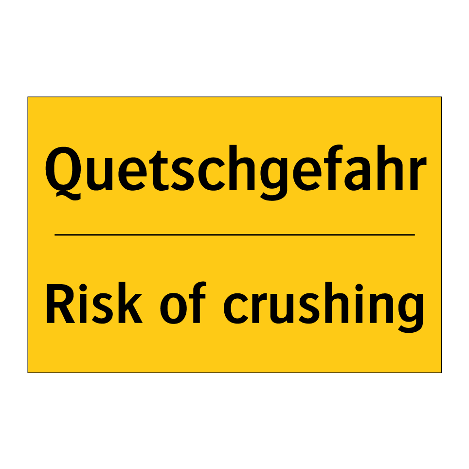 Zweisprachiges Warnschild mit deutschem Text Quetschgefahr und englischem Text Risk of crushing