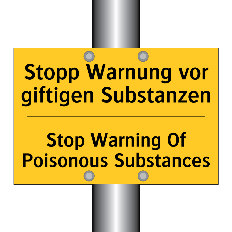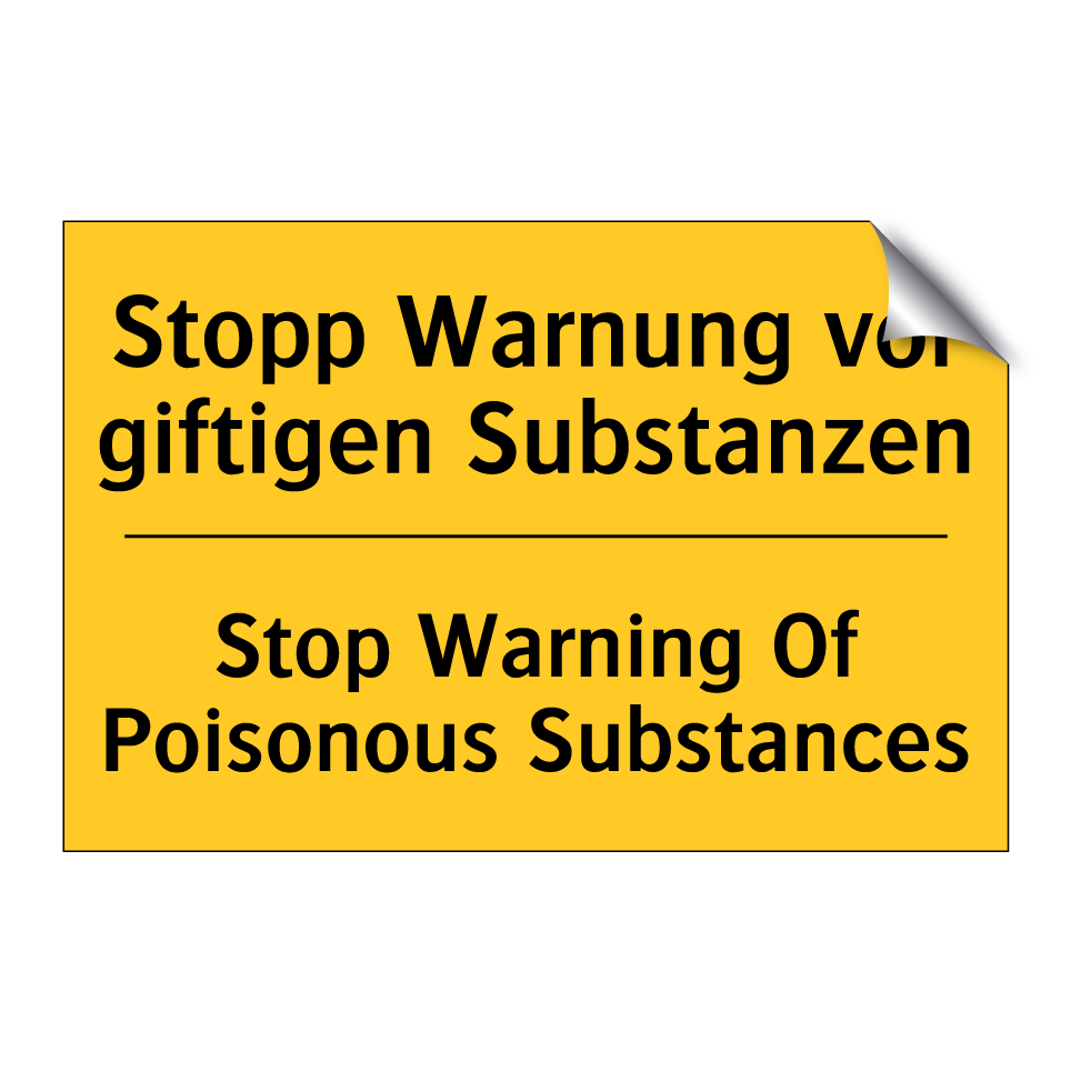 Zweisprachiges Warnschild mit deutschem Text Stopp Warnung vor giftigen Substanzen und englischem Text Stop Warning Of Poisonous Substances