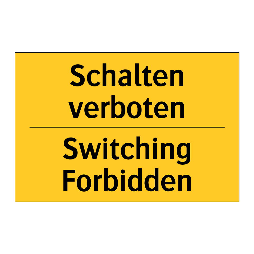 Zweisprachiges Warnschild mit deutschem Text Schalten verboten und englischem Text Switching Forbidden
