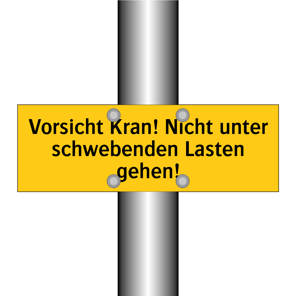 Warnschild mit dem Text Vorsicht Kran! Nicht unter schwebenden Lasten gehen!