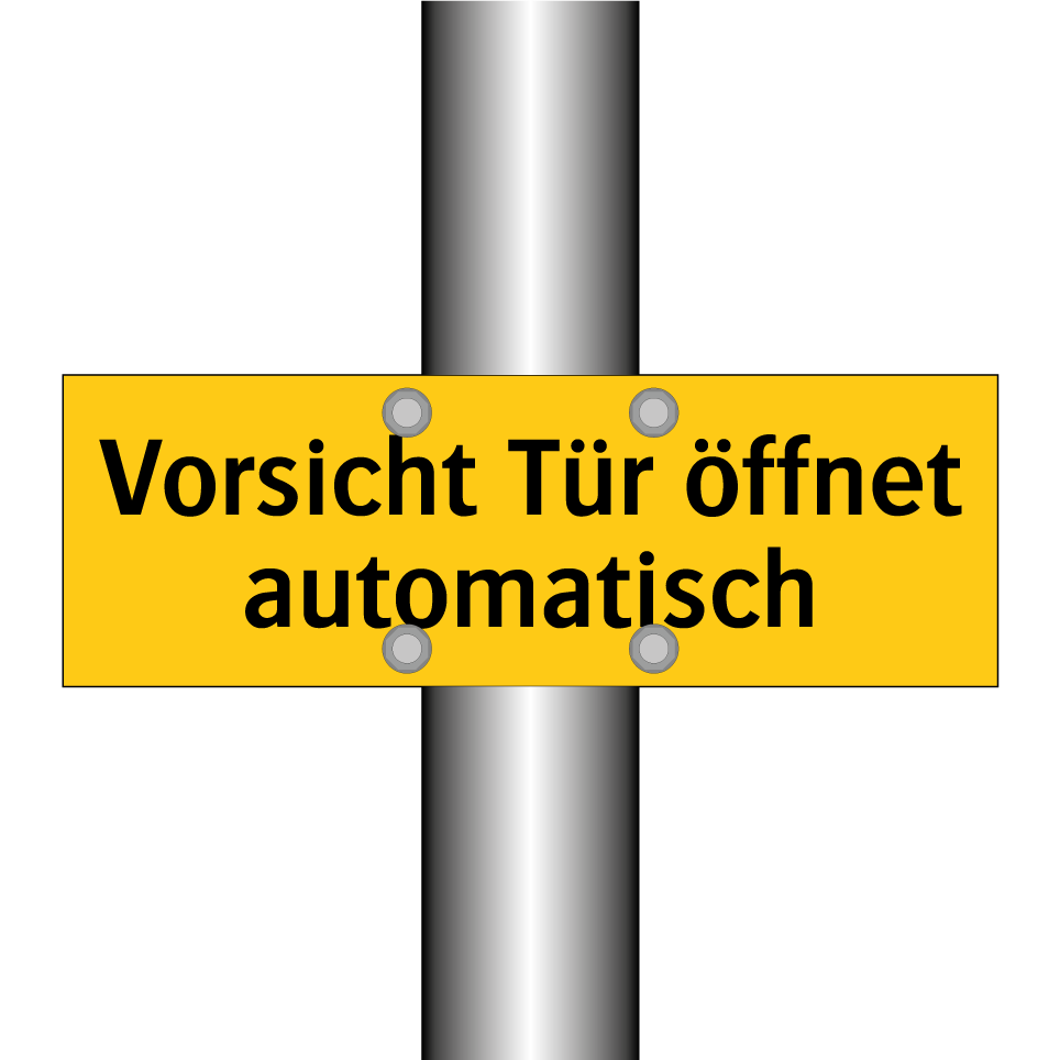 Warnschild mit dem Text Vorsicht Tür öffnet automatisch
