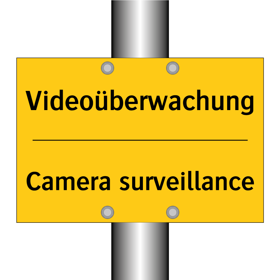 Zweisprachiges Warnschild mit deutschem Text Videoüberwachung und englischem Text Camera surveillance