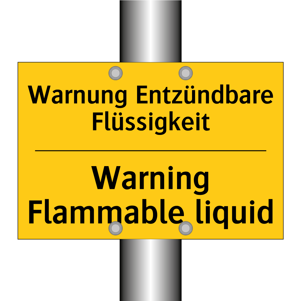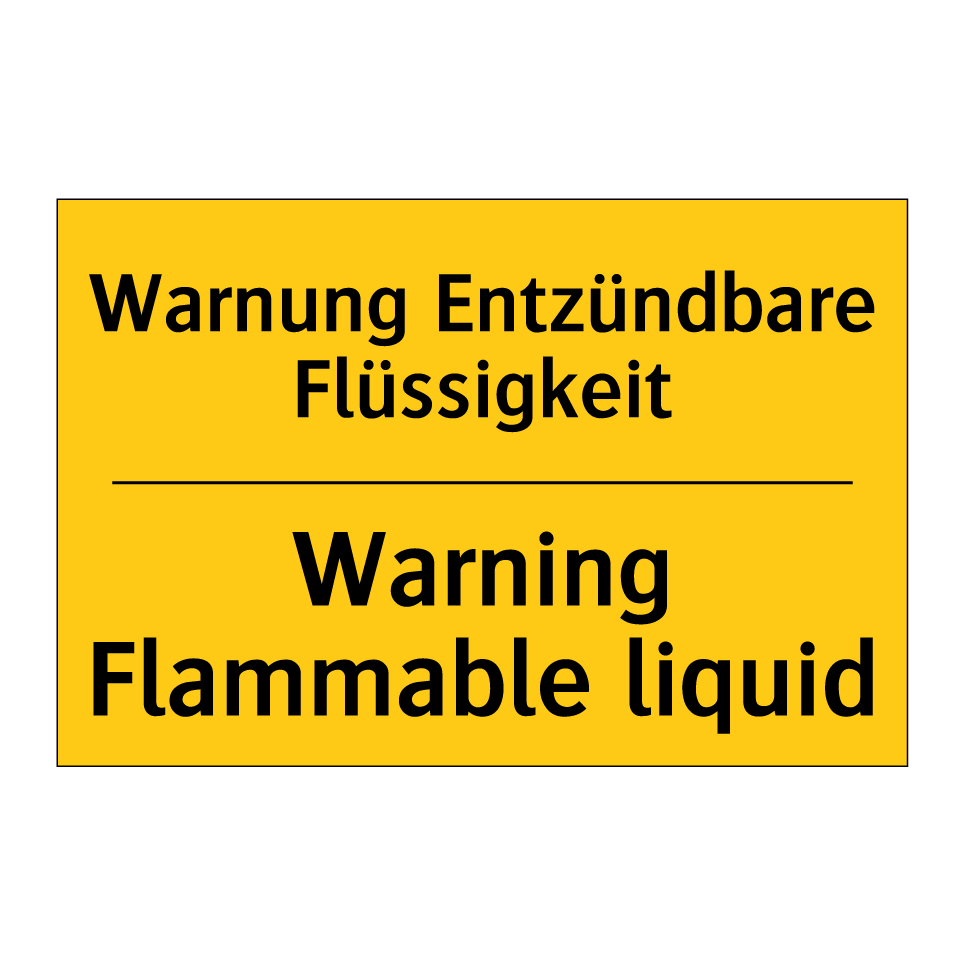 Zweisprachiges Warnschild mit deutschem Text Warnung Entzündbare Flüssigkeit und englischem Text Warning Flammable liquid