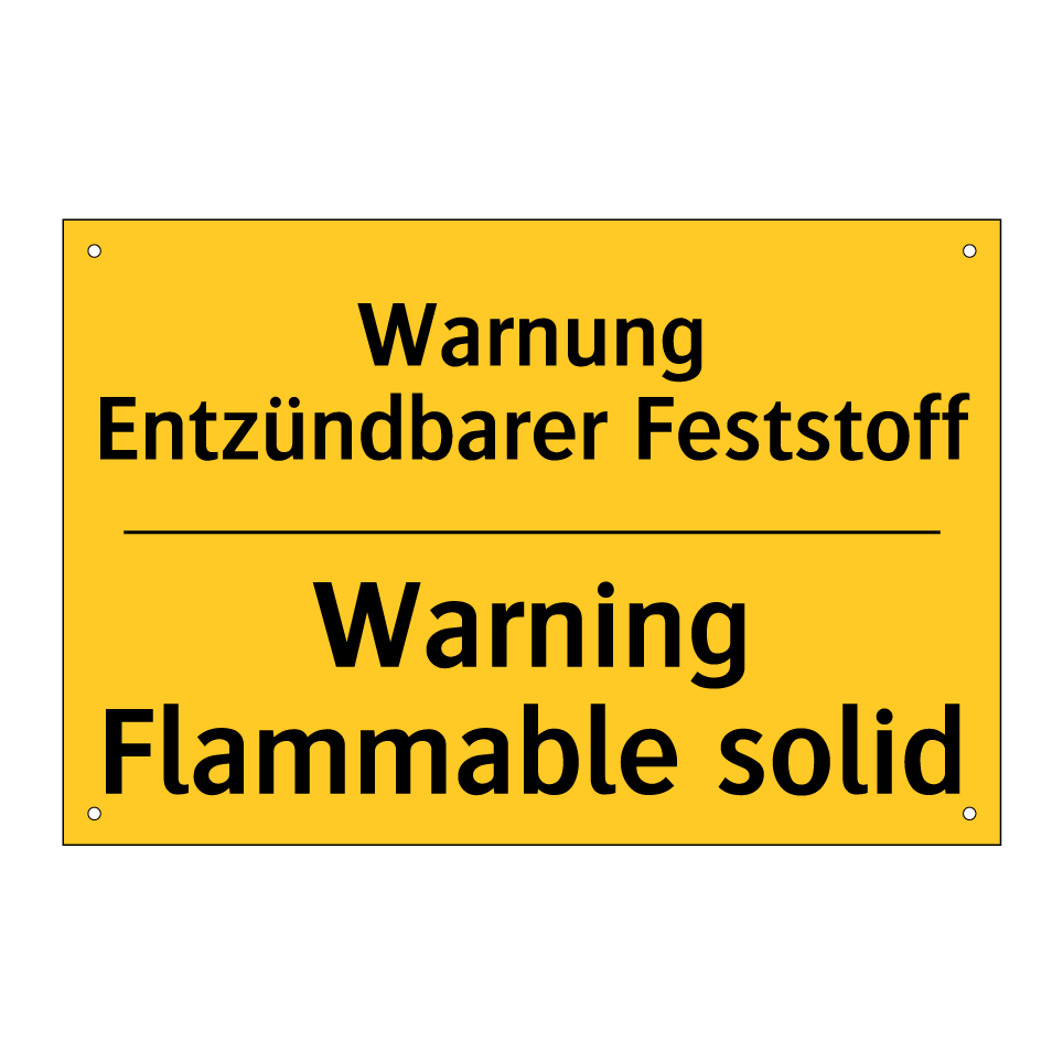 Zweisprachiges Warnschild mit deutschem Text Warnung Entzündbarer Feststoff und englischem Text Warning Flammable solid