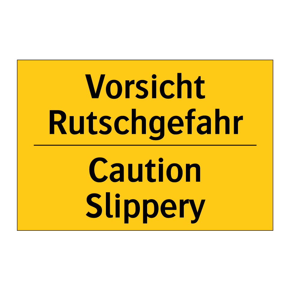 Zweisprachiges Warnschild mit deutschem Text Vorsicht Rutschgefahr und englischem Text Caution Slippery