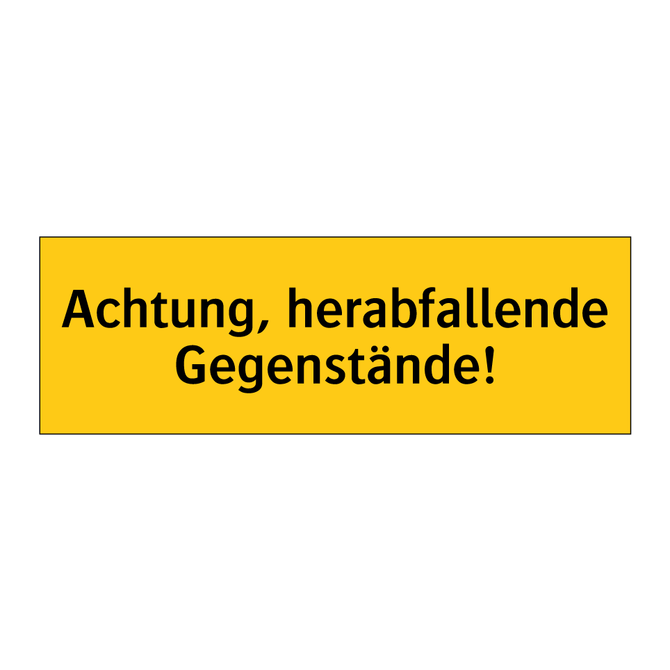 Warnschild mit dem Text Achtung, herabfallende Gegenstände!