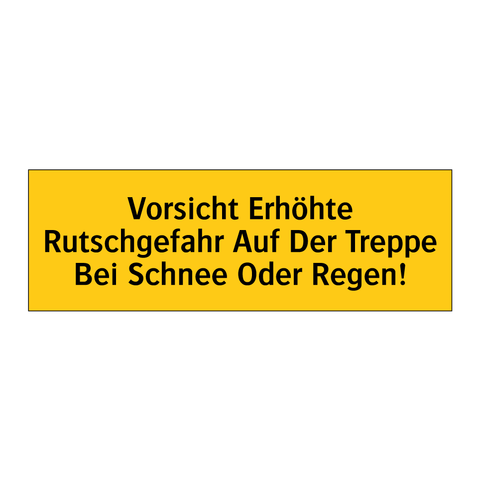 Diese Warnschild ist ein unverzichtbares Sicherheitsmerkmal in Bereichen mit erhöhter Rutschgefahr. Besonders in Treppenhäusern, die bei Schnee oder Regen schnell gefährlich werden können, bietet es eine klare Warnung. Die gelbe Hintergrundfarbe und der schwarze Text sorgen dafür, dass die Botschaft sofort ins Auge fällt. Ideal für den Einsatz in öffentlichen Gebäuden, Bürokomplexen oder Wohnanlagen, erinnert es Passanten daran, vorsichtig zu sein und Unfälle zu vermeiden. Platzieren Sie das Warnschild an gut sichtbaren Stellen, um die Sicherheit zu erhöhen und das Bewusstsein für potenzielle Gefahren zu schärfen.