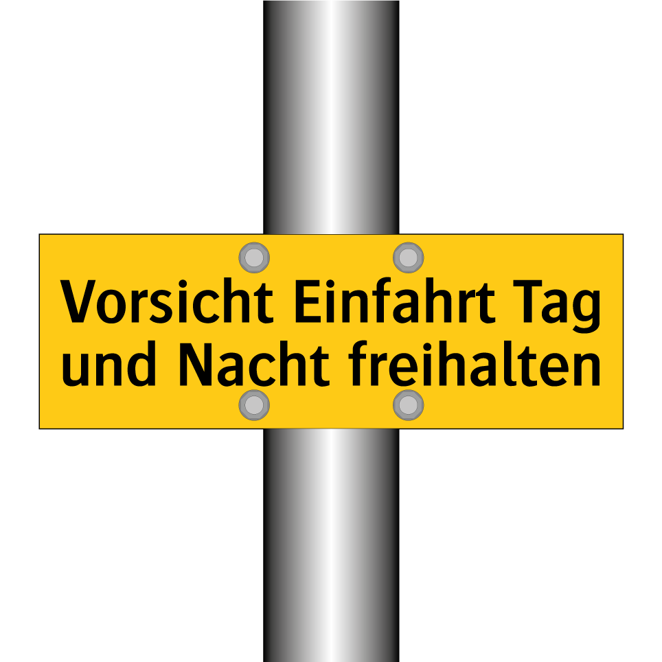 Warnschild mit dem Text Vorsicht Einfahrt Tag und Nacht freihalten