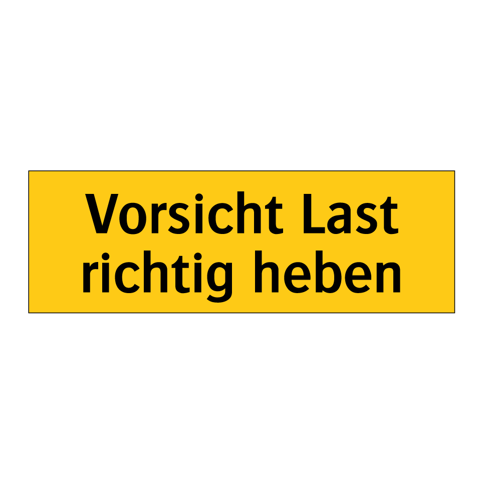 Warnschild mit dem Text Vorsicht Last richtig heben