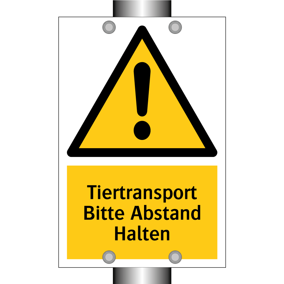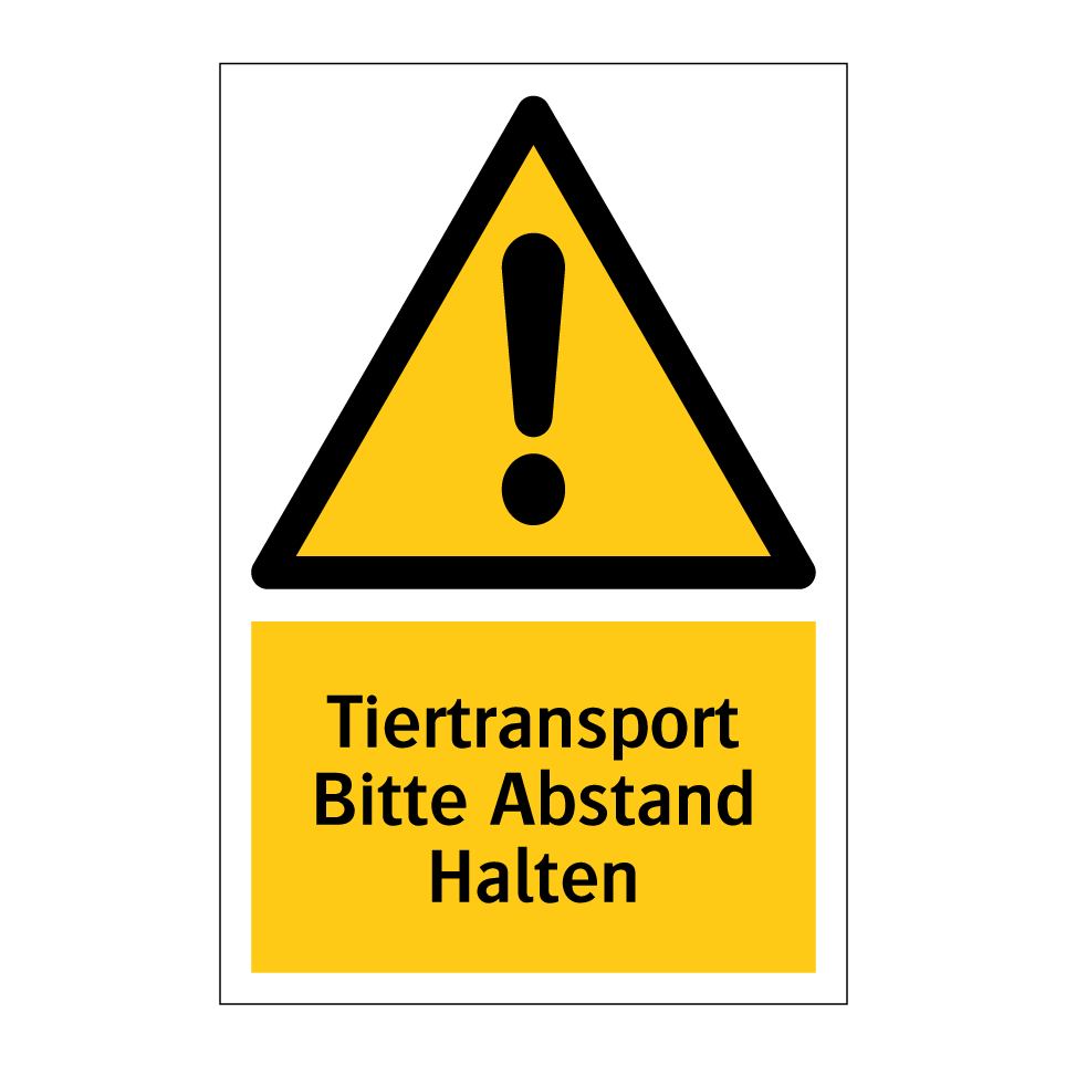 Warnschild mit dem Text Tiertransport Bitte Abstand Halten