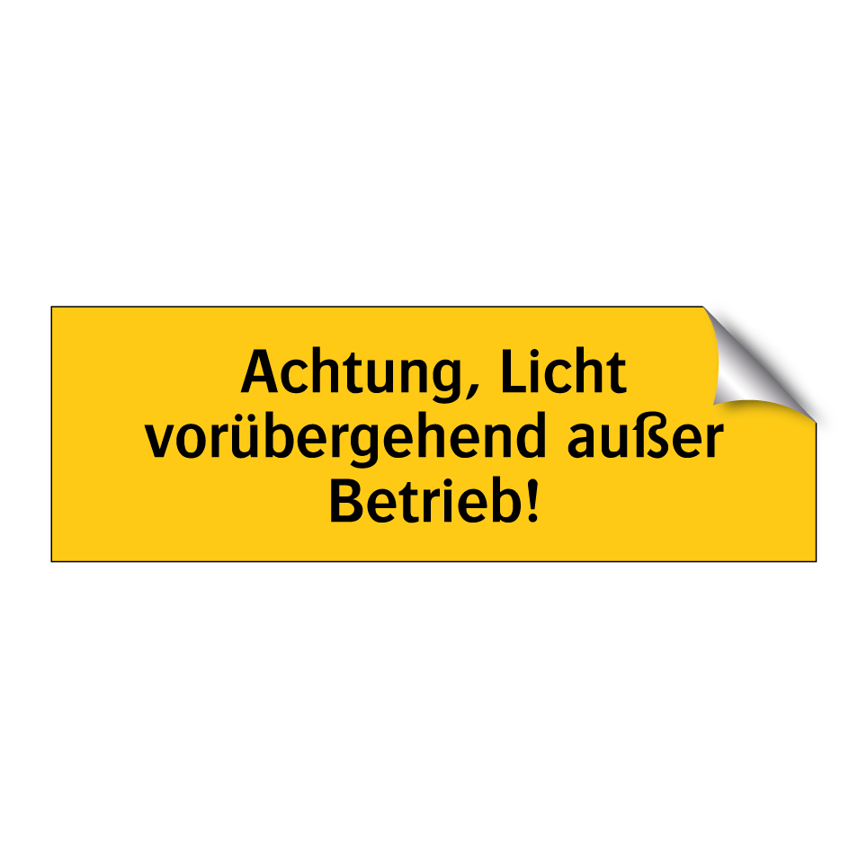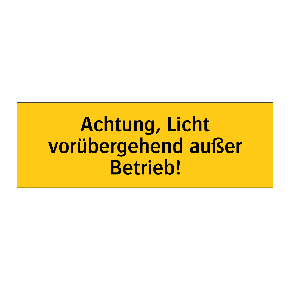 Warnschild mit dem Text Achtung, Licht vorübergehend außer Betrieb!