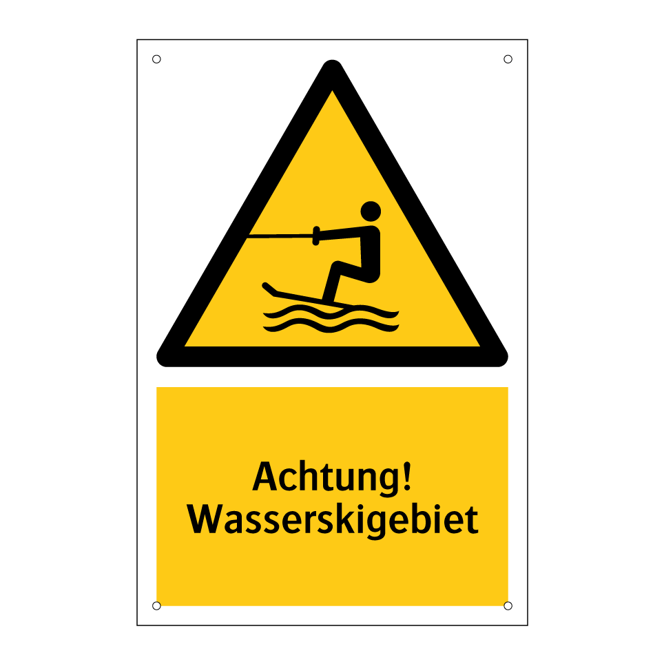 Diese auffällige Warnschild mit gelbem Hintergrund und schwarzer Schrift ist ideal für den Einsatz in Wassersportgebieten. Sie dient dazu, Bootsfahrer und Schwimmer auf die Nähe eines Wasserskigebiets aufmerksam zu machen und so die Sicherheit auf dem Wasser zu erhöhen. Die klare Symbolik und der prägnante Text sorgen dafür, dass die Botschaft schnell und effektiv vermittelt wird. Diese Warnschilder sind besonders nützlich an Uferbereichen, Anlegestellen oder in der Nähe von Wassersportzentren. Durch die strategische Platzierung dieser Schilder können Unfälle vermieden und die Aufmerksamkeit der Wassersportler geschärft werden.