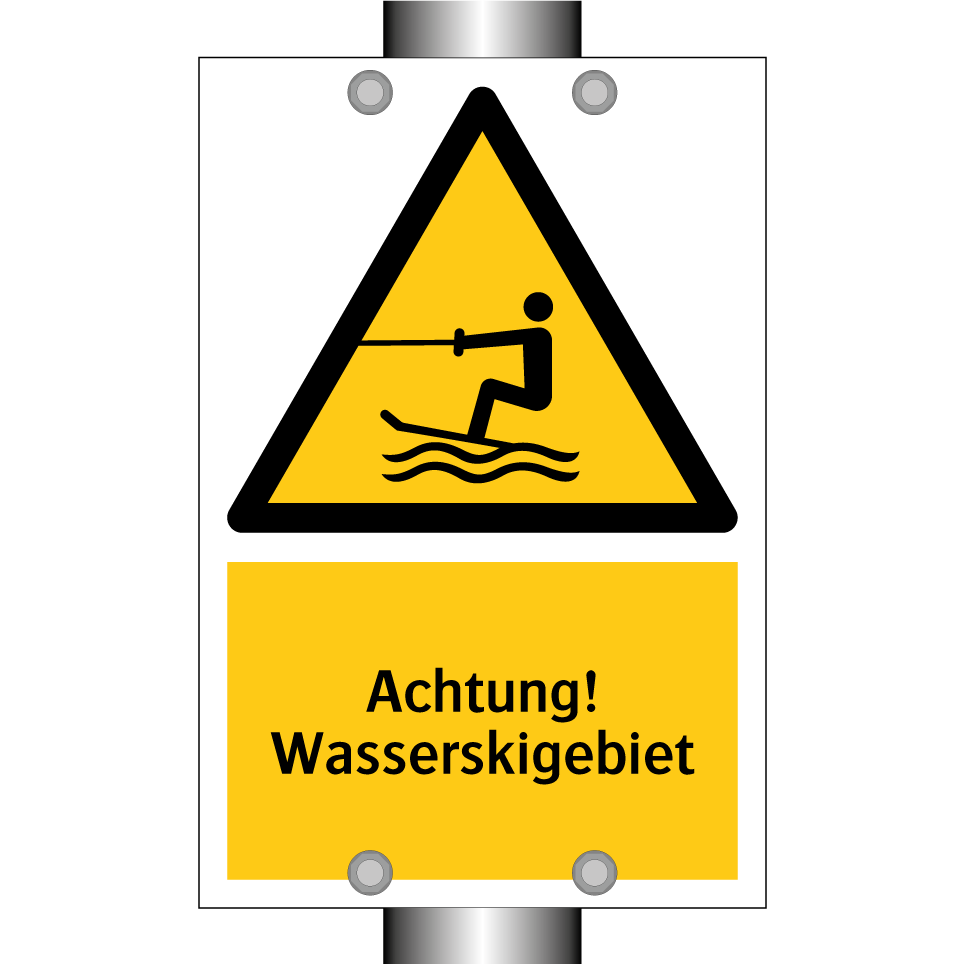 Warnschild mit dem Text Achtung! Wasserskigebiet