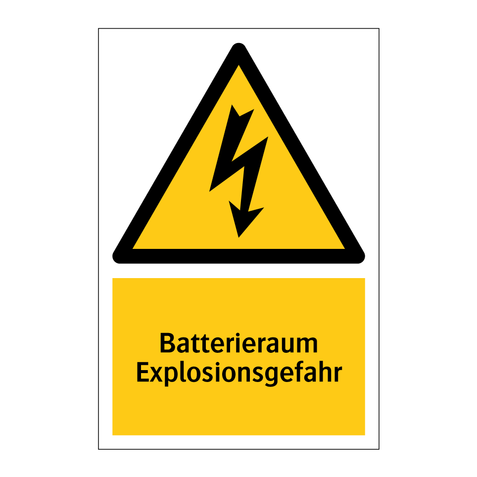 Warnschild mit dem Text Batterieraum Explosionsgefahr