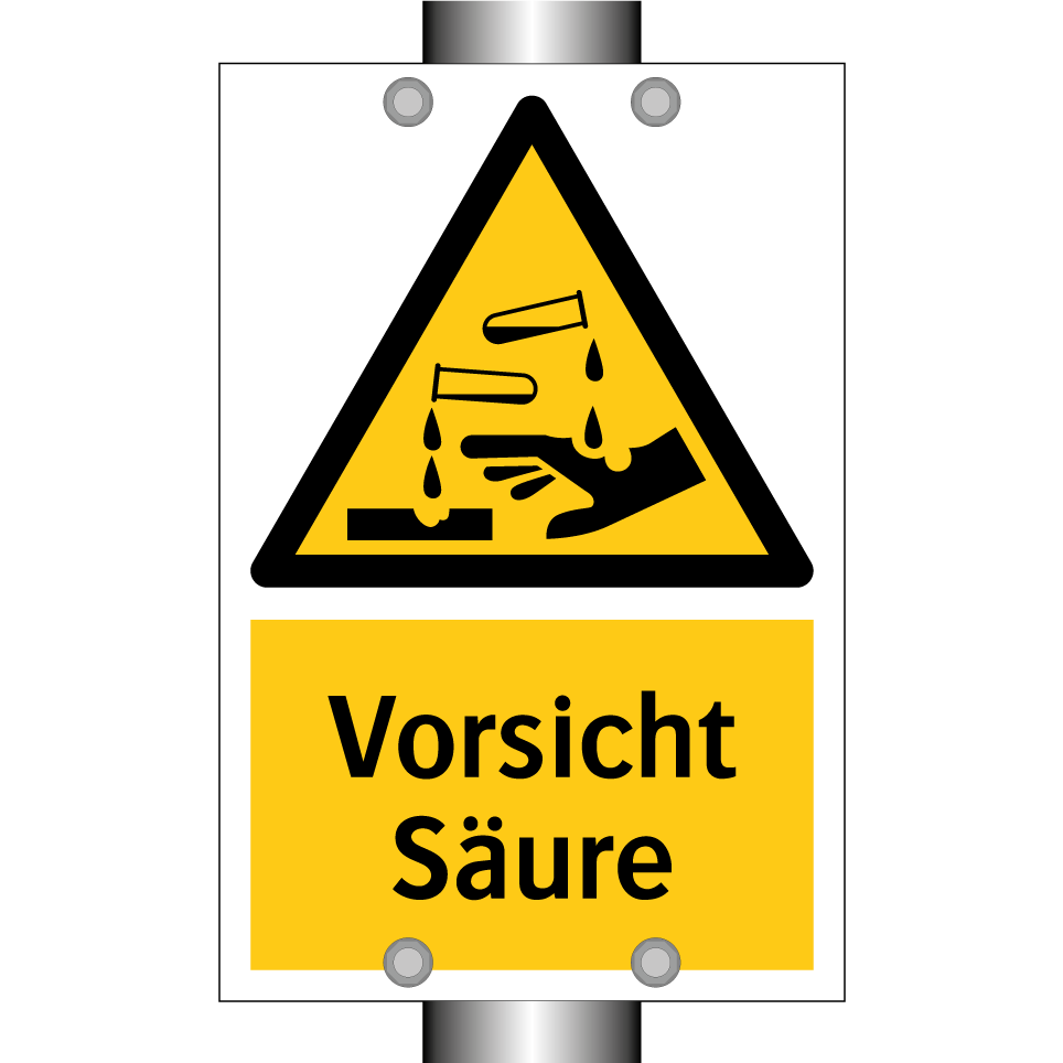 Diese auffällige Warnschild mit gelbem Hintergrund und schwarzer Schrift ist ideal, um auf die Gefahren von Säuren hinzuweisen. Sie eignet sich hervorragend für den Einsatz in Laboren, Chemiefabriken oder Lagerbereichen, in denen ätzende Substanzen gelagert werden. Durch die klare Symbolik und die prägnante Botschaft wird die Aufmerksamkeit effektiv auf potenzielle Gefahren gelenkt. Platzieren Sie das Warnschild an gut sichtbaren Stellen, um Mitarbeiter und Besucher vor möglichen Risiken zu schützen. Diese Warnschilder sind unverzichtbar für die Sicherheit in Umgebungen, in denen mit gefährlichen Chemikalien gearbeitet wird.