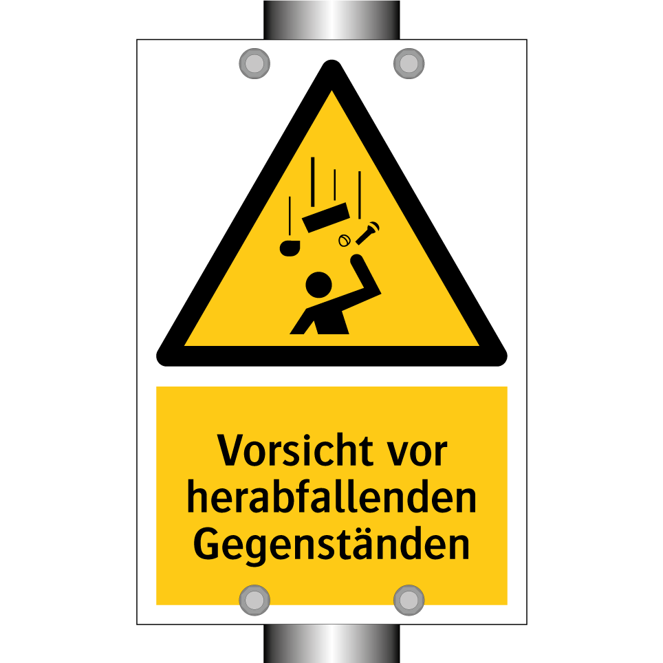 Warnschild mit dem Text Vorsicht vor herabfallenden Gegenständen