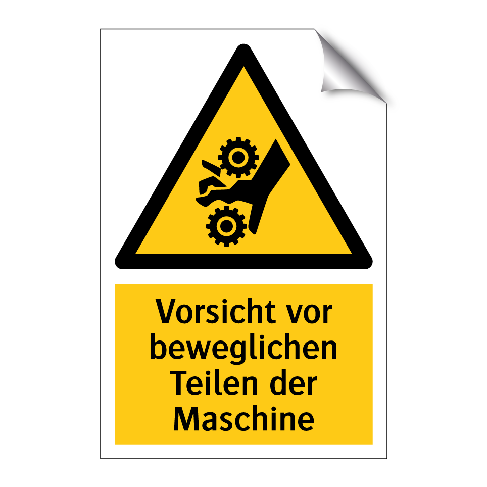Warnschild mit dem Text Vorsicht vor beweglichen Teilen der Maschine