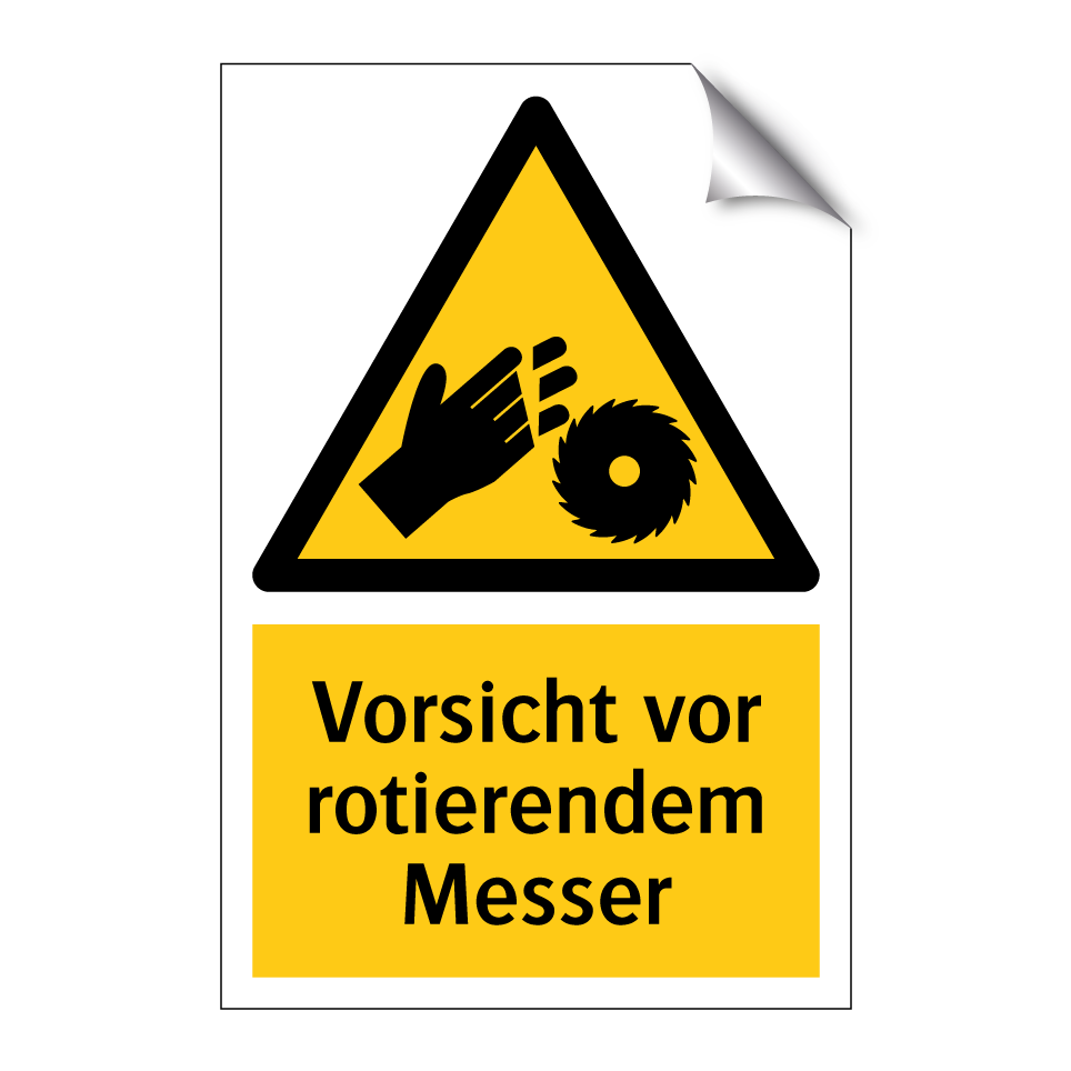 Warnschild mit dem Text Vorsicht vor rotierendem Messer