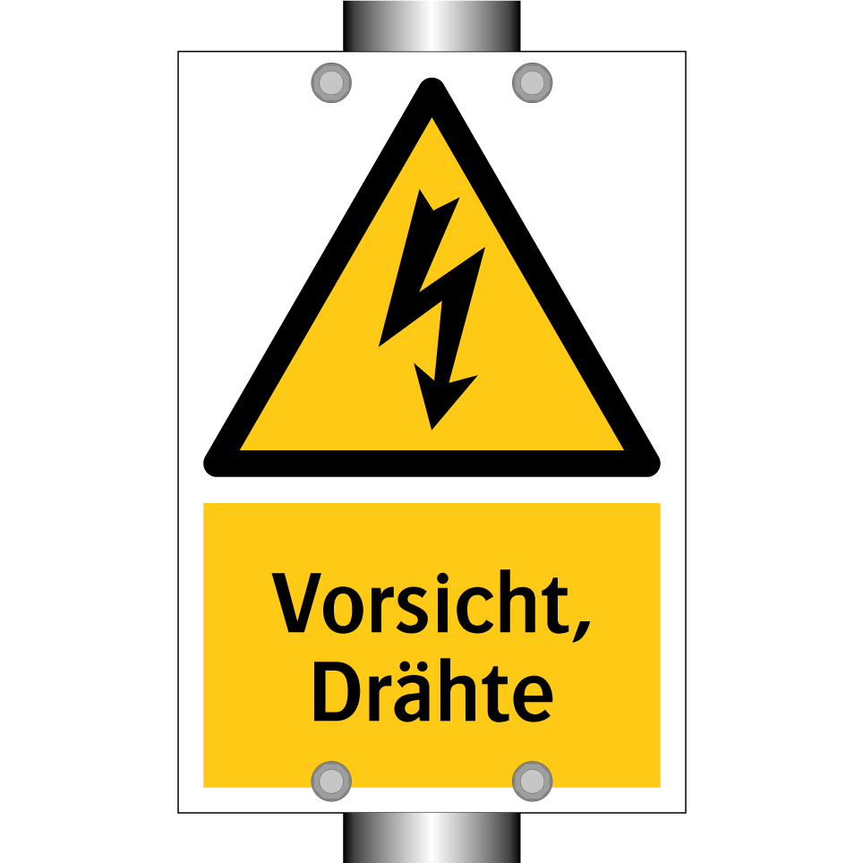 Warnschild mit dem Text Vorsicht, Drähte
