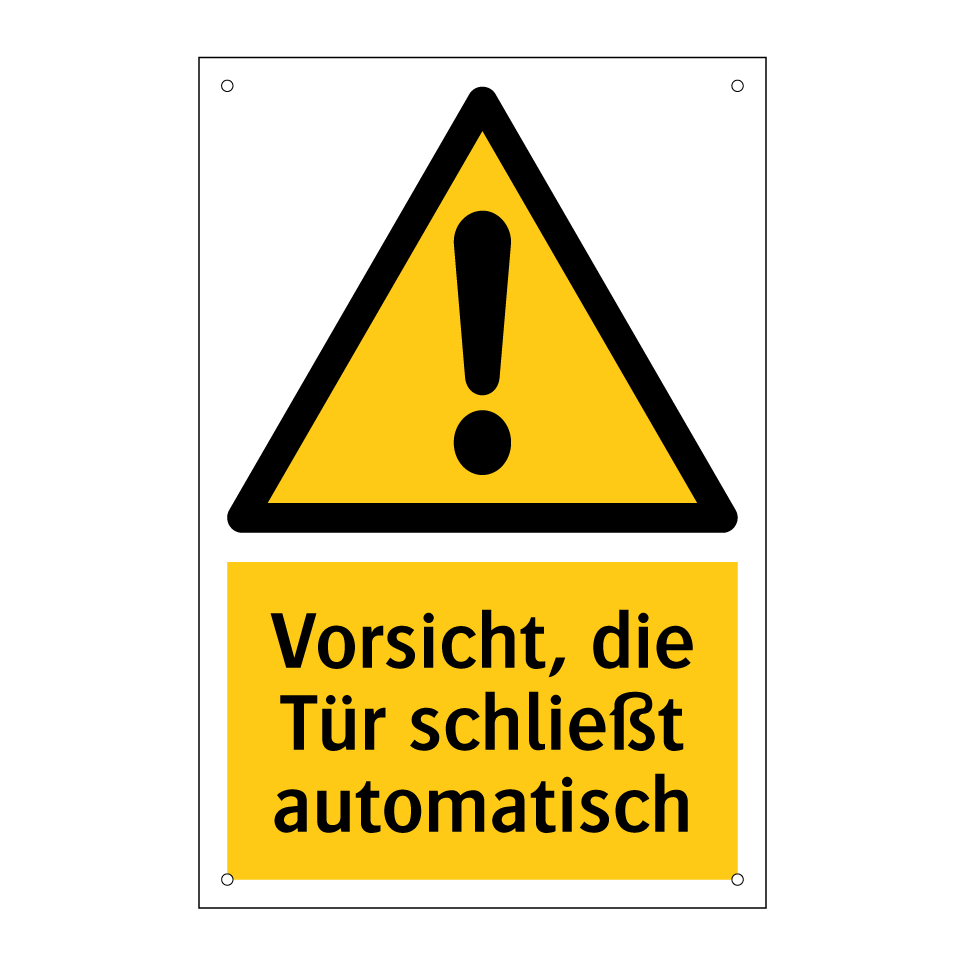 Warnschild mit dem Text Vorsicht, die Tür schließt automatisch