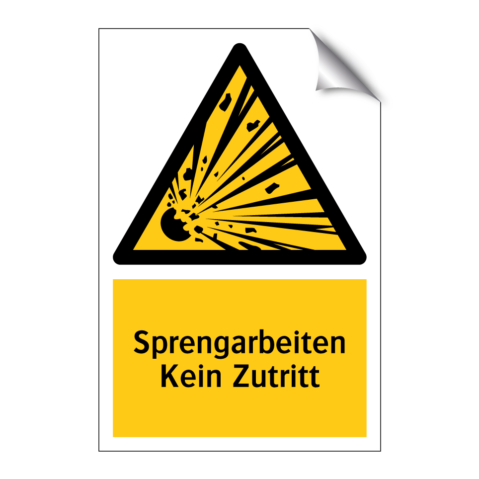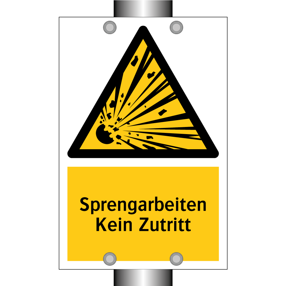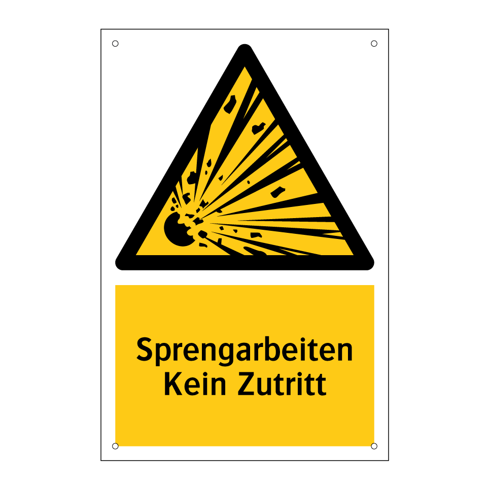Warnschild mit dem Text Sprengarbeiten Kein Zutritt