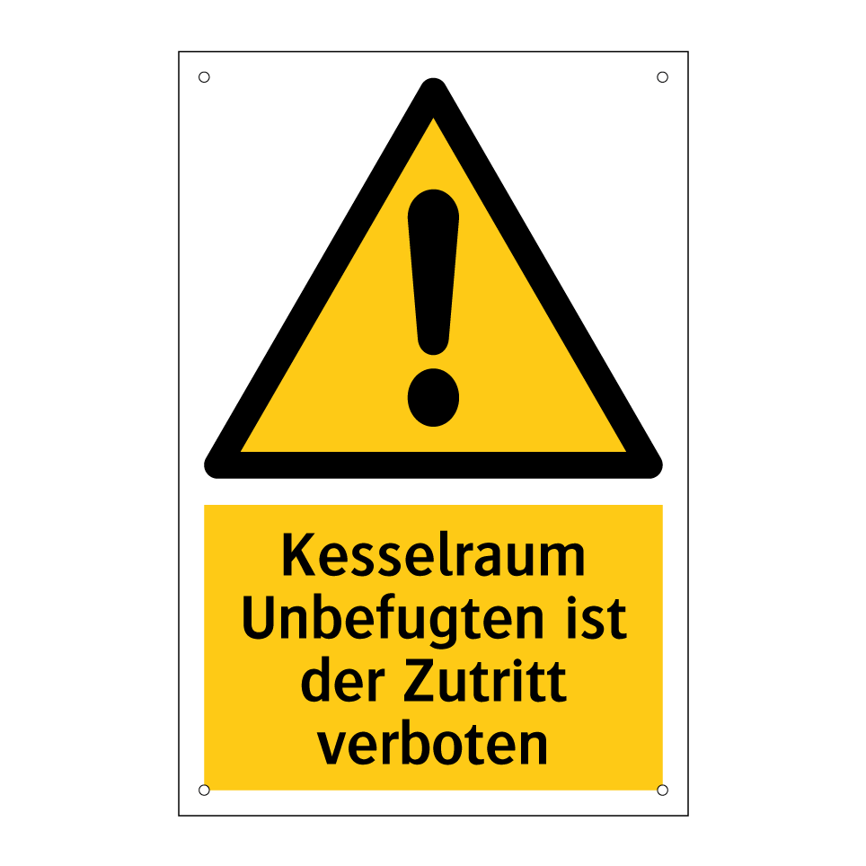 Warnschild mit dem Text Kesselraum Unbefugten ist der Zutritt verboten