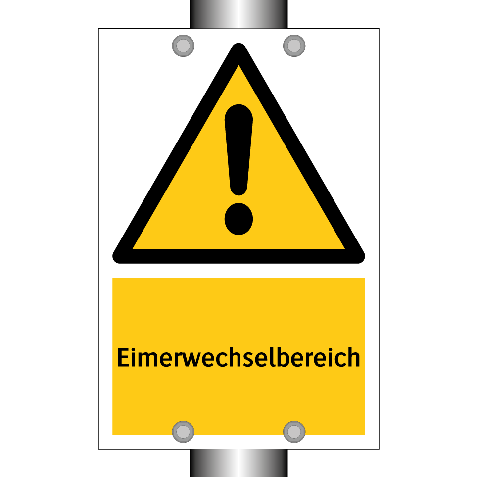 Warnschild mit dem Text Eimerwechselbereich