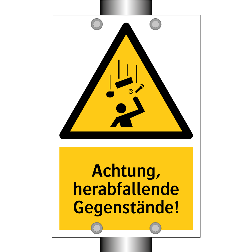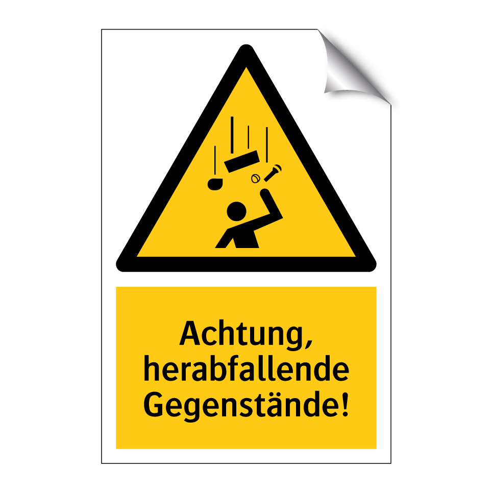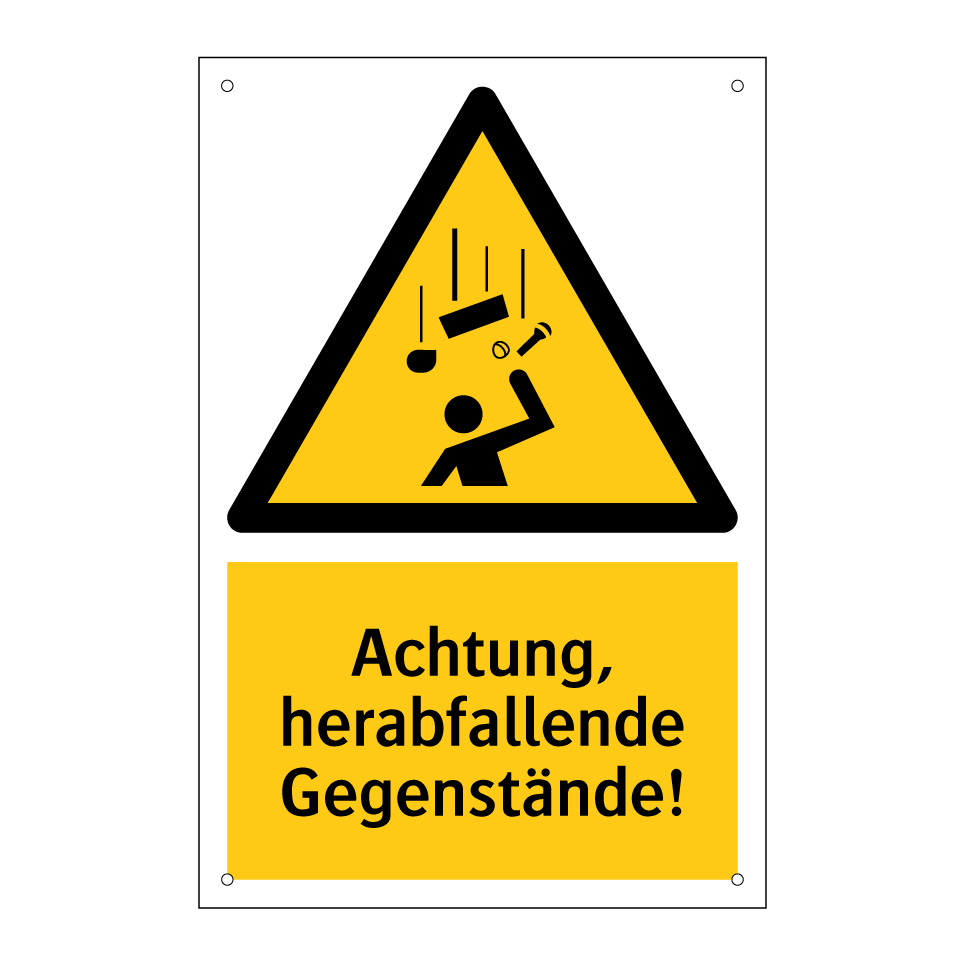 Warnschild mit dem Text Achtung, herabfallende Gegenstände!