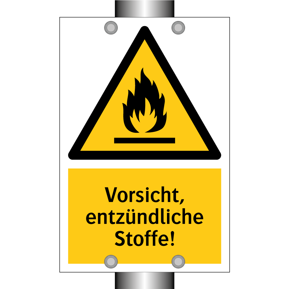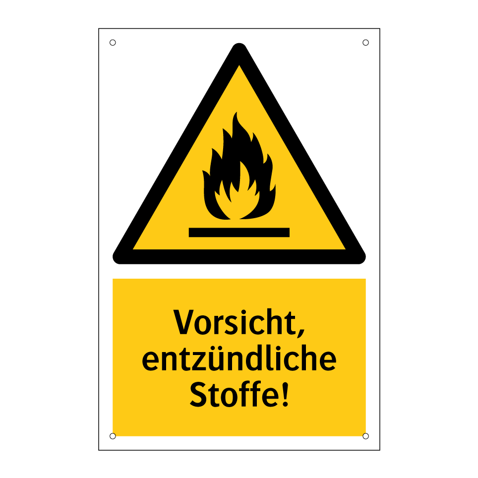 Warnschild mit dem Text Vorsicht, entzündliche Stoffe!