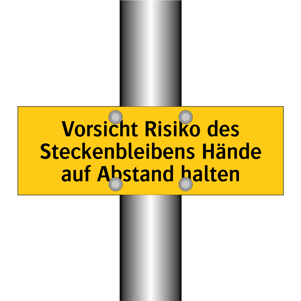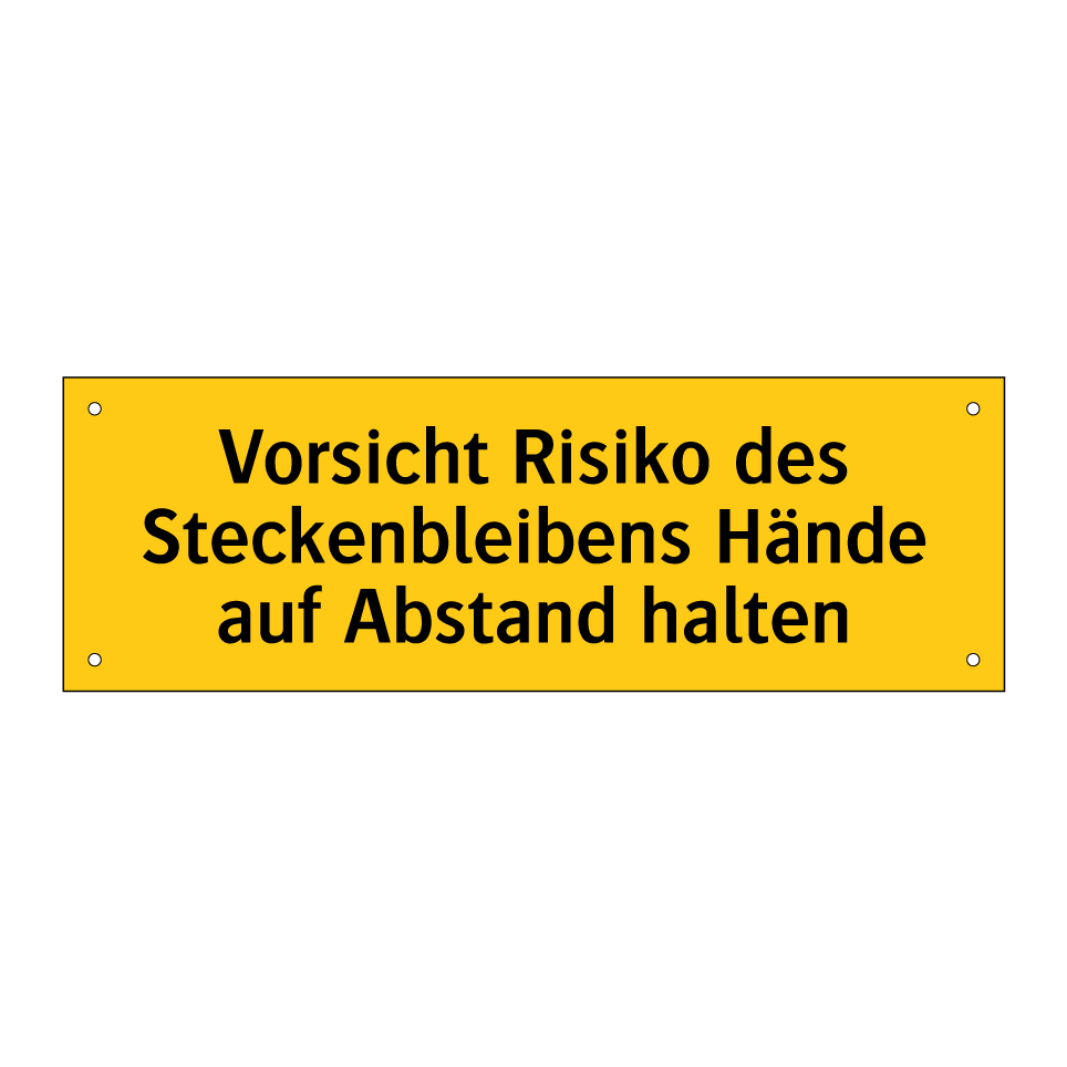 Warnschild mit dem Text Vorsicht Risiko des Steckenbleibens Hände auf Abstand halten