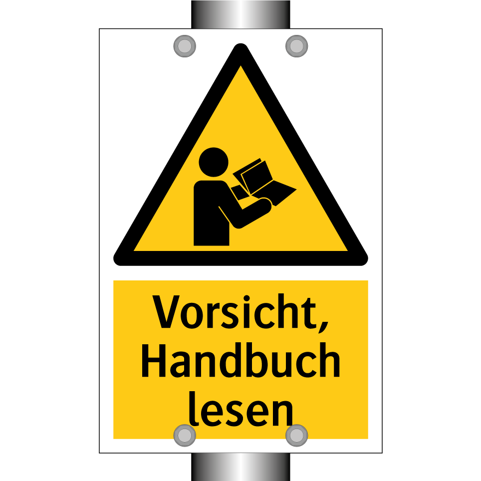 Warnschild mit dem Text Vorsicht, Handbuch lesen
