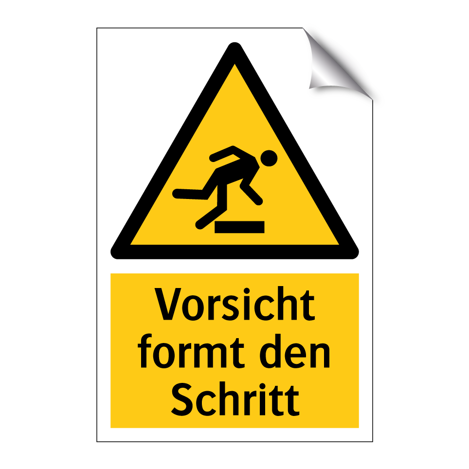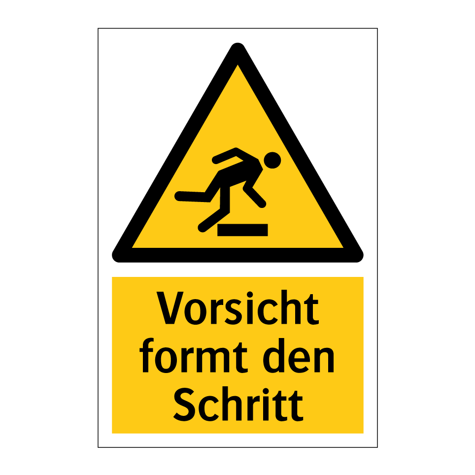 Warnschild mit dem Text Vorsicht formt den Schritt