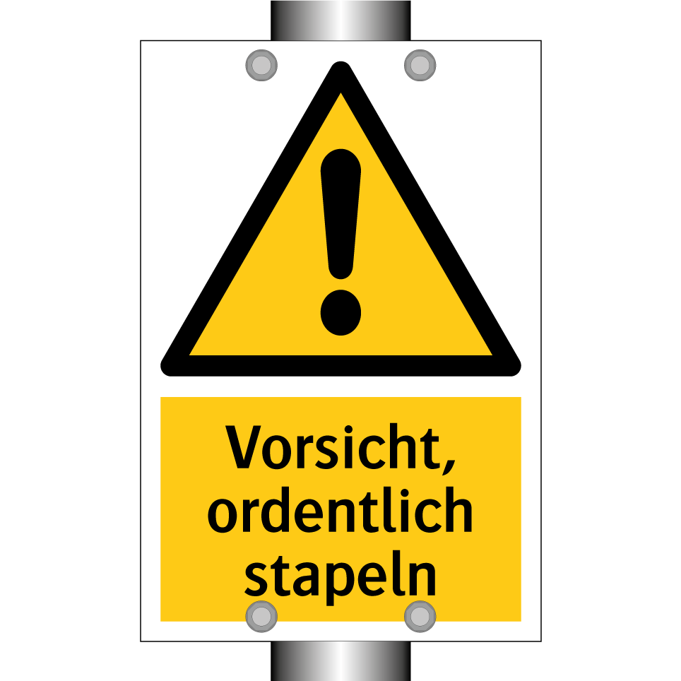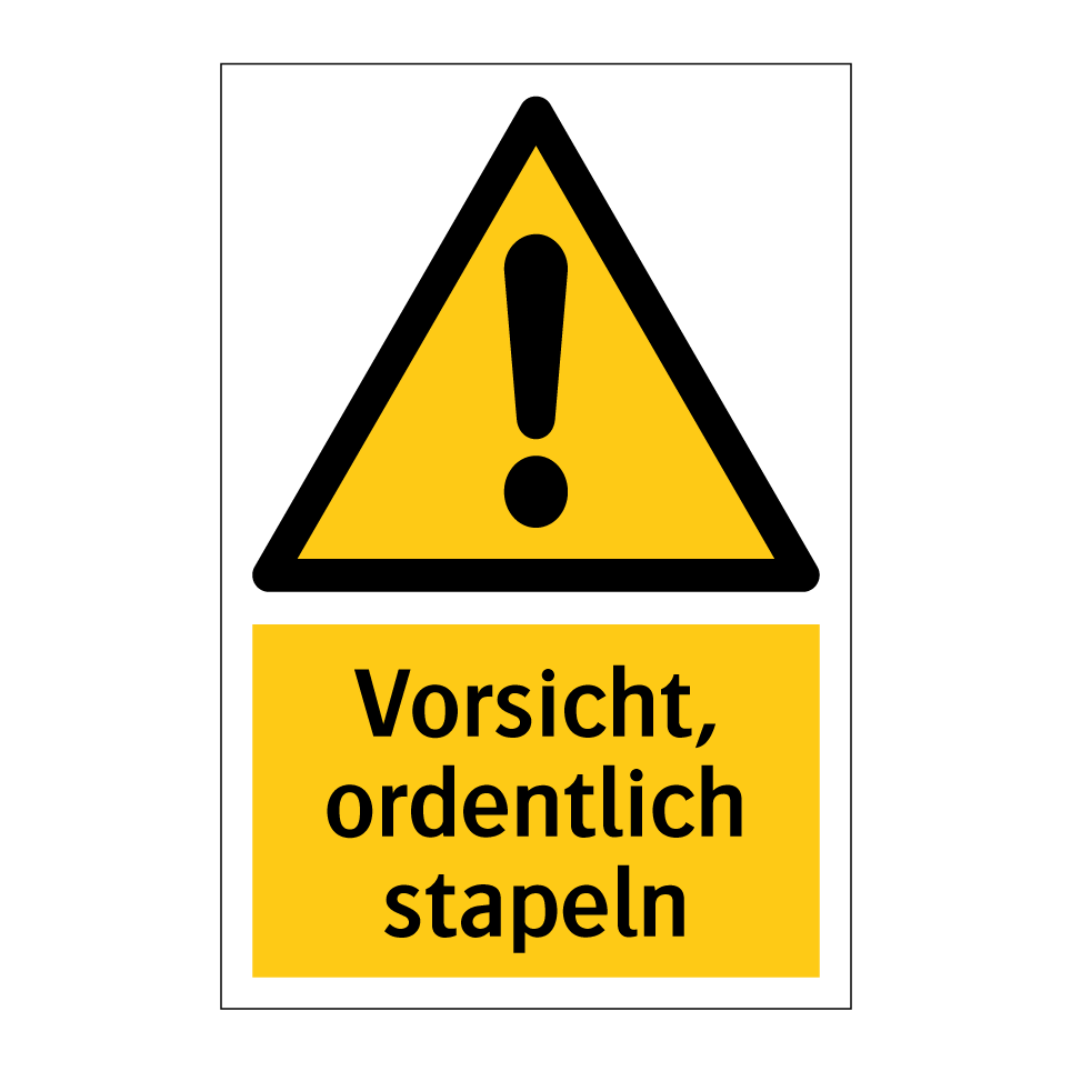 Warnschild mit dem Text Vorsicht, ordentlich stapeln