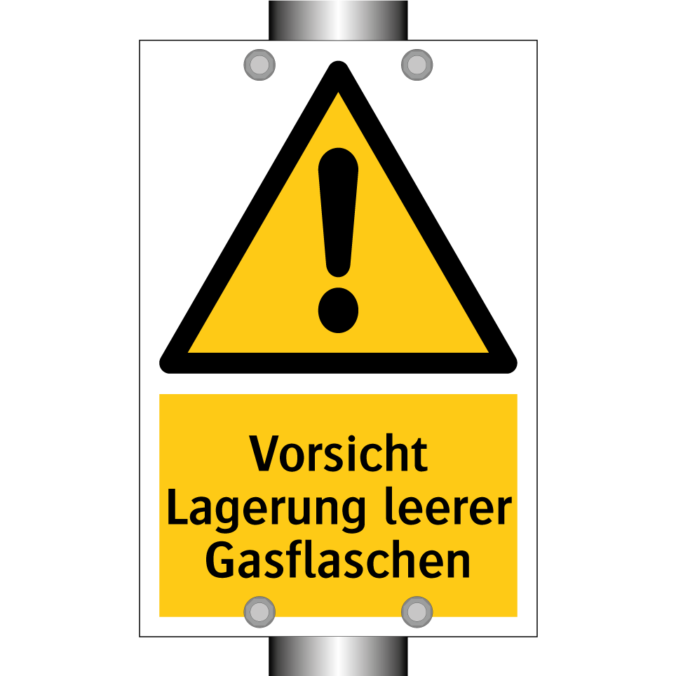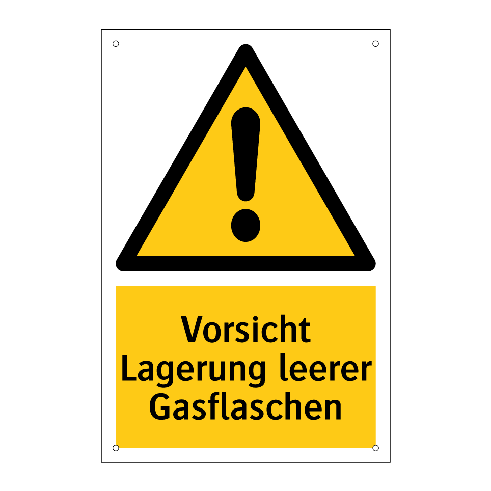 Warnschild mit dem Text Vorsicht Lagerung leerer Gasflaschen