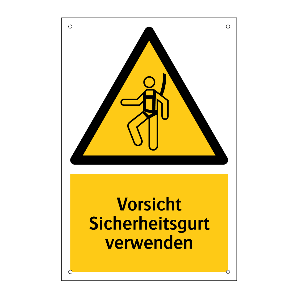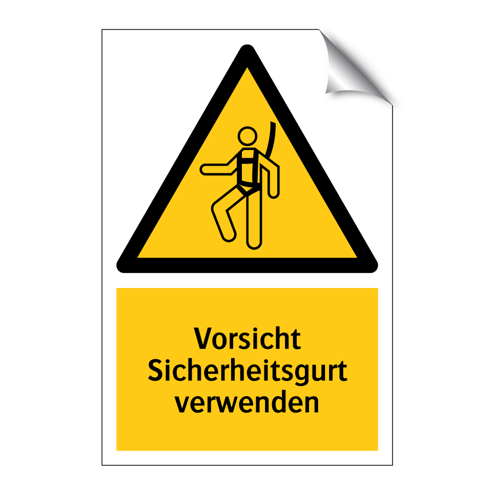 Warnschild mit dem Text Vorsicht Sicherheitsgurt verwenden