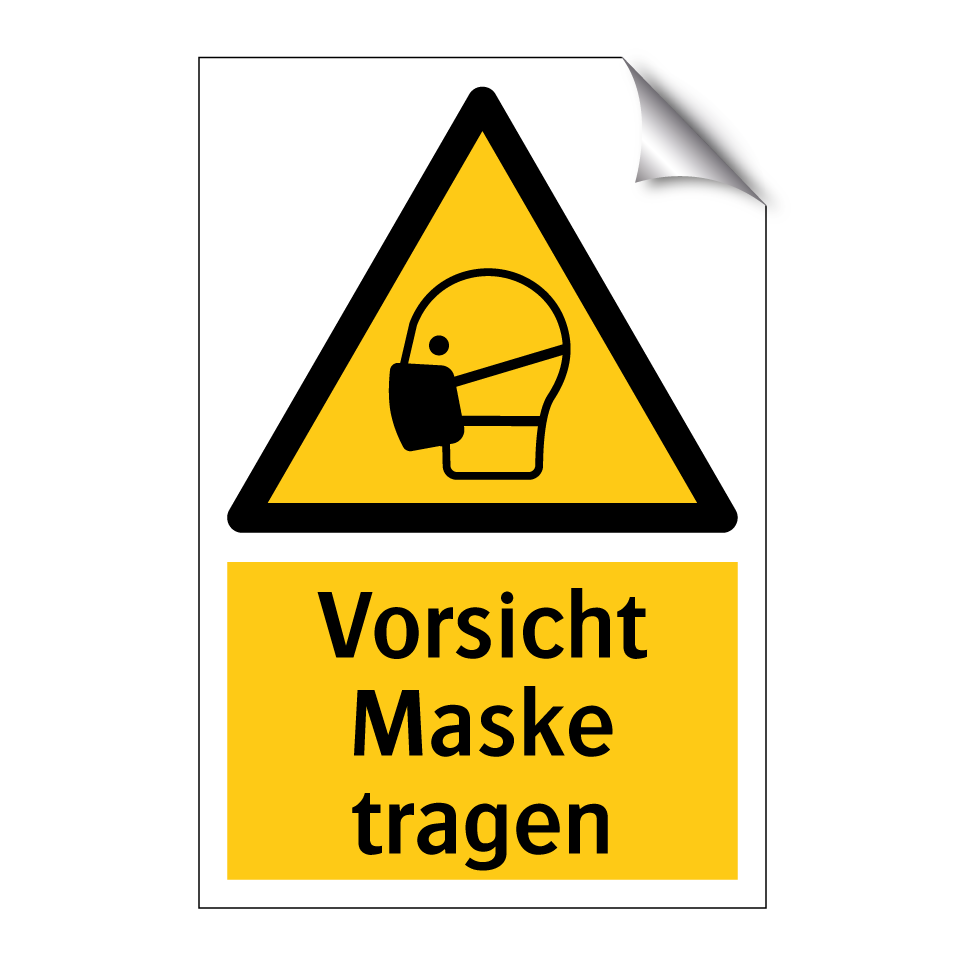 Warnschild mit dem Text Vorsicht Maske tragen