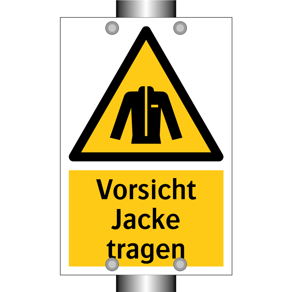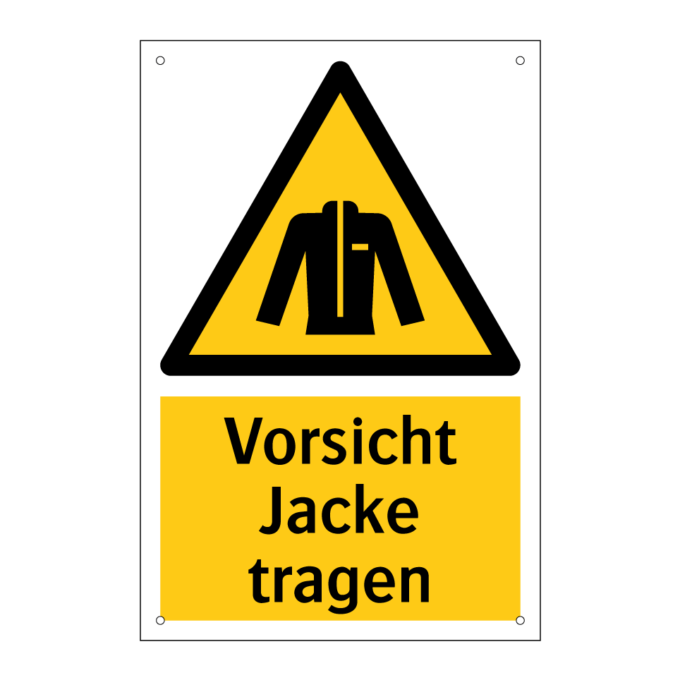 Warnschild mit dem Text Vorsicht Jacke tragen