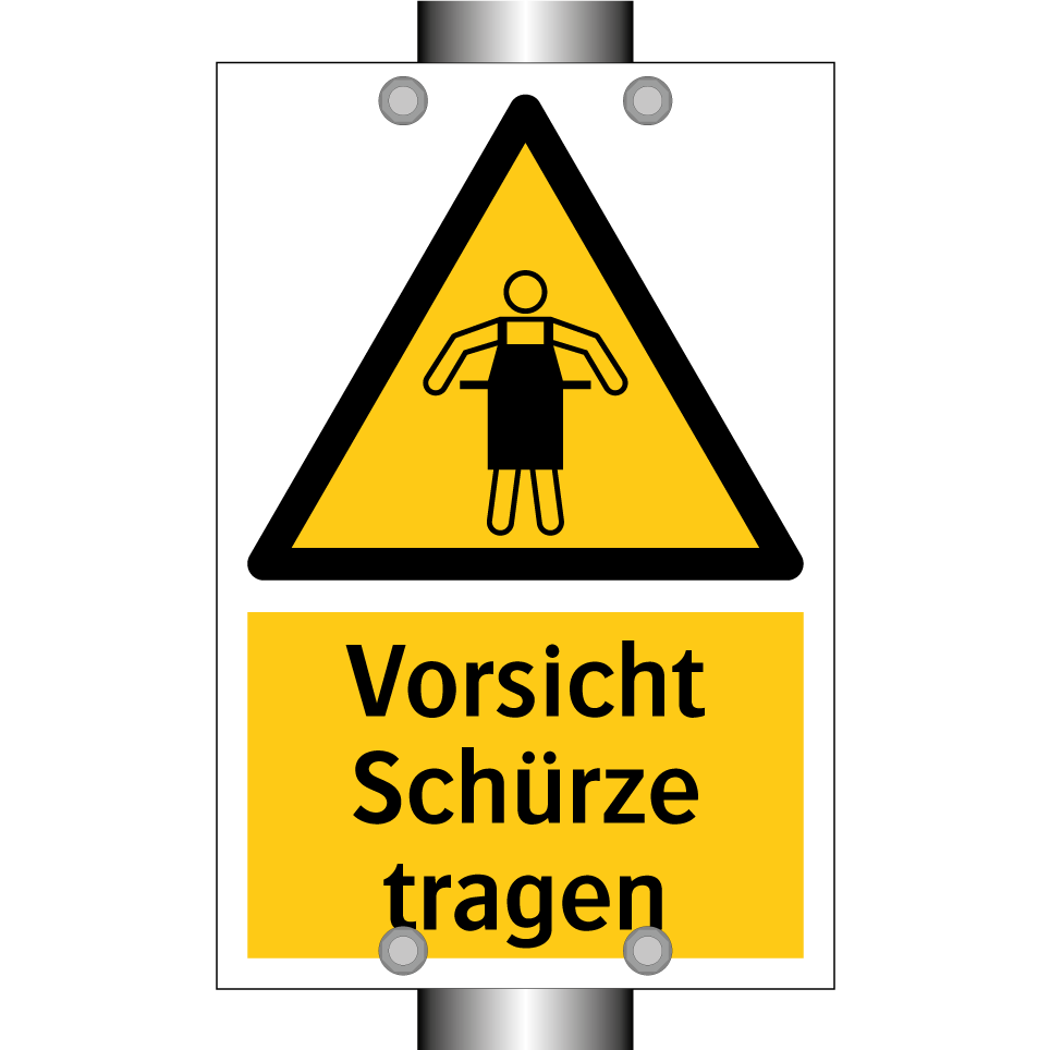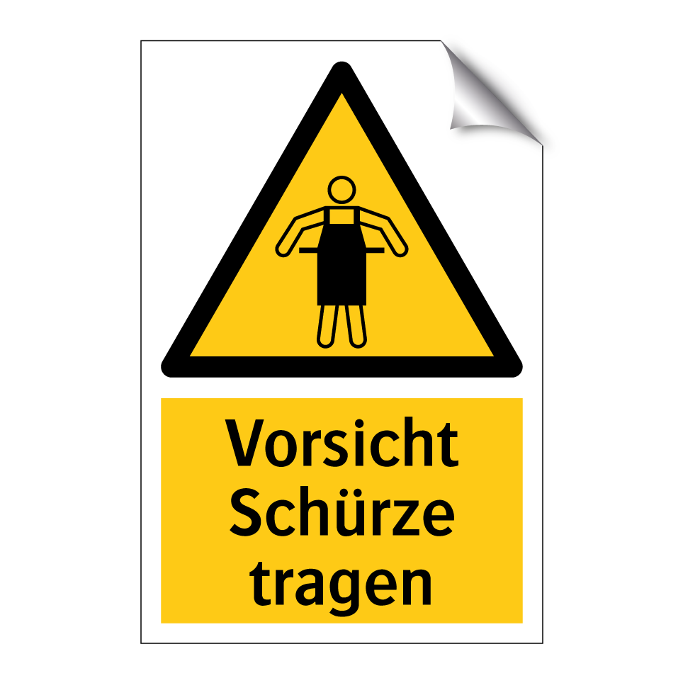 Warnschild mit dem Text Vorsicht Schürze tragen