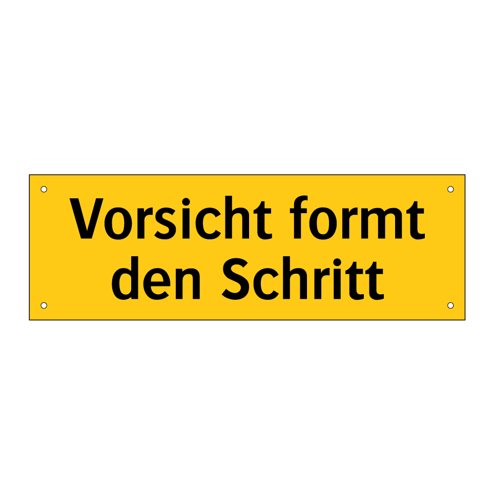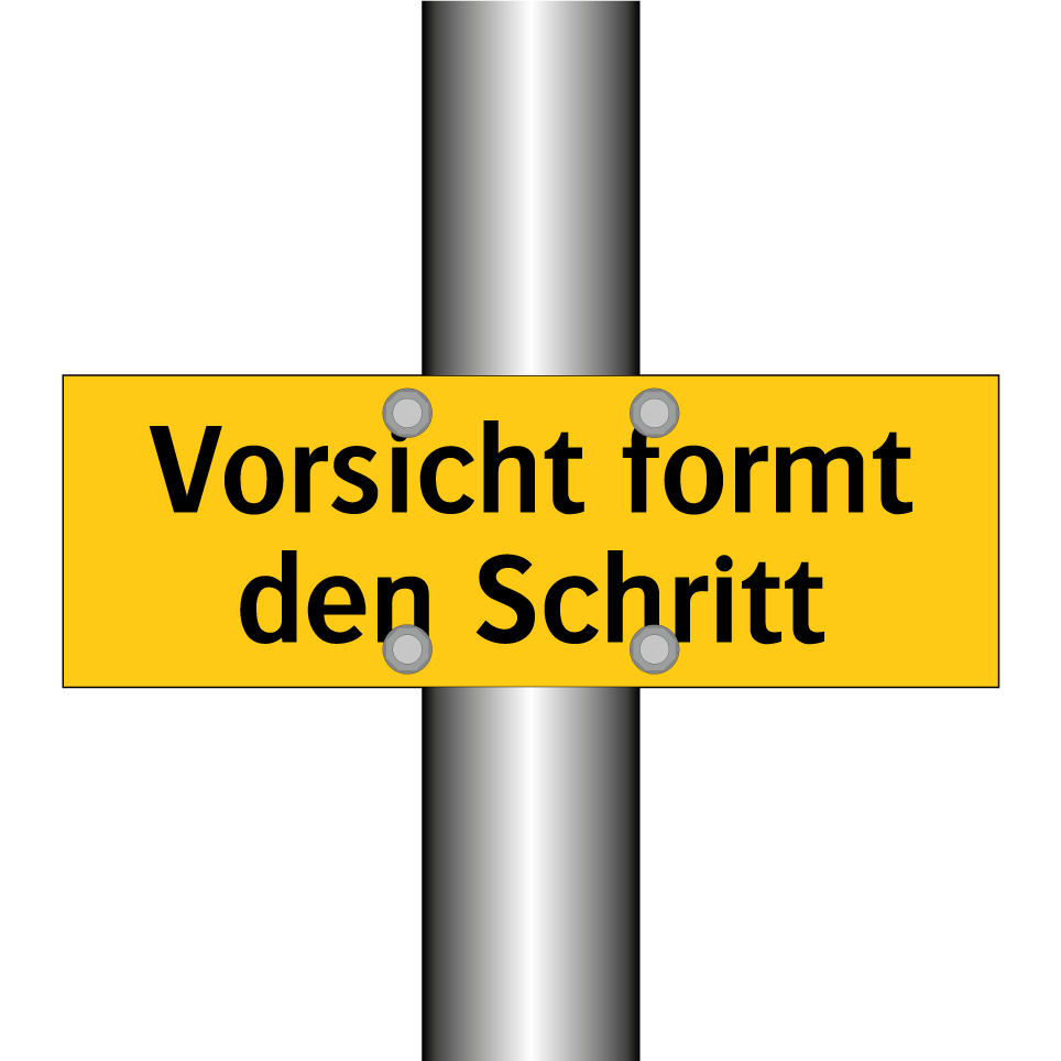 Warnschild mit dem Text Vorsicht formt den Schritt