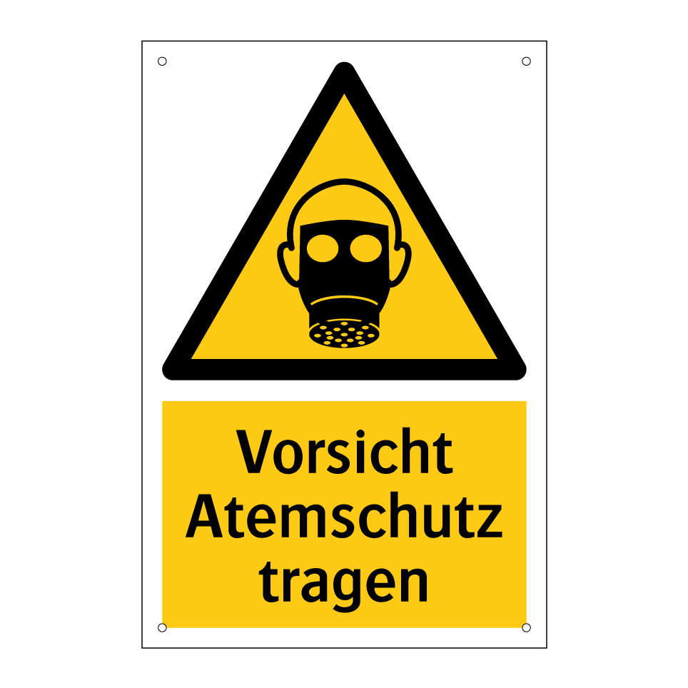 Warnschild mit dem Text Vorsicht Atemschutz tragen