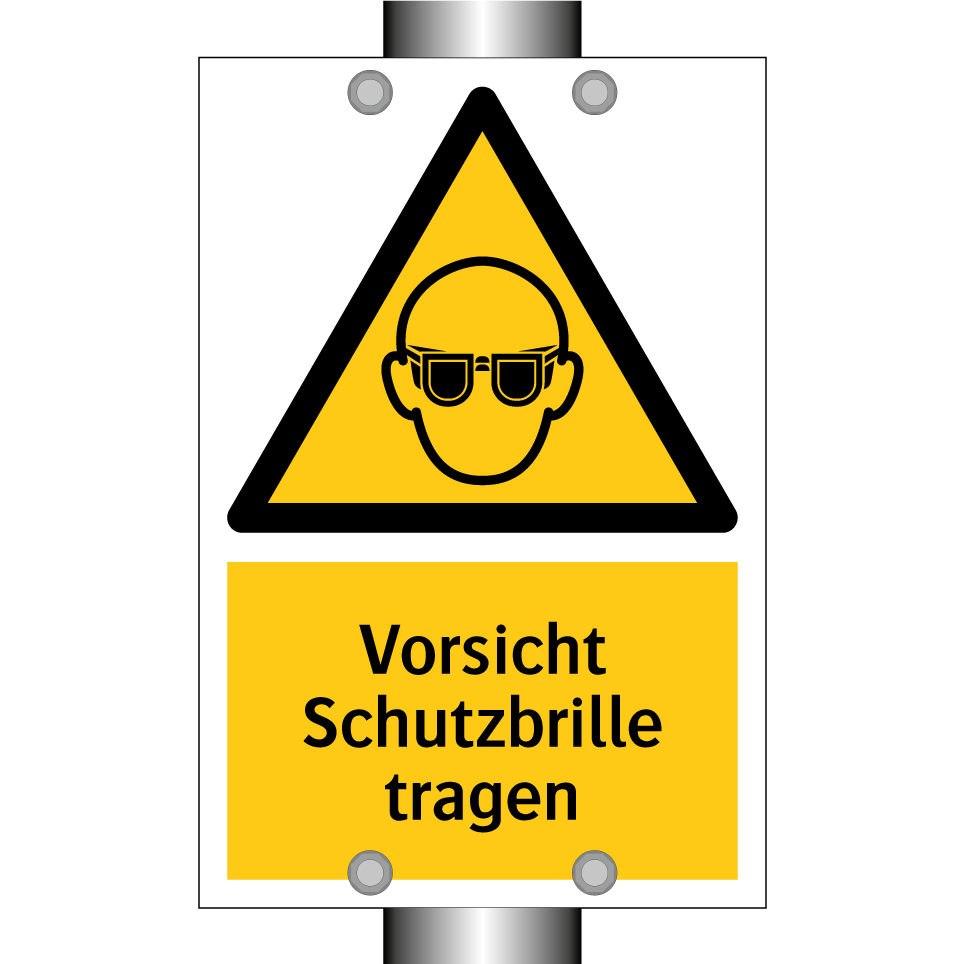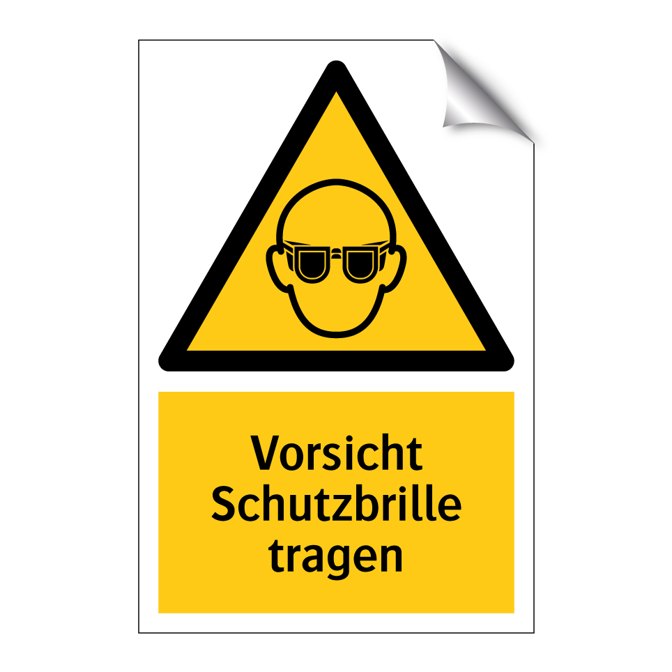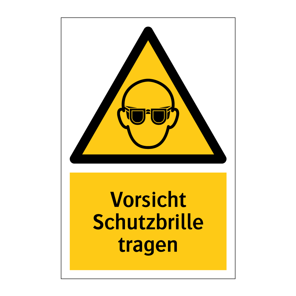 Warnschild mit dem Text Vorsicht Schutzbrille tragen