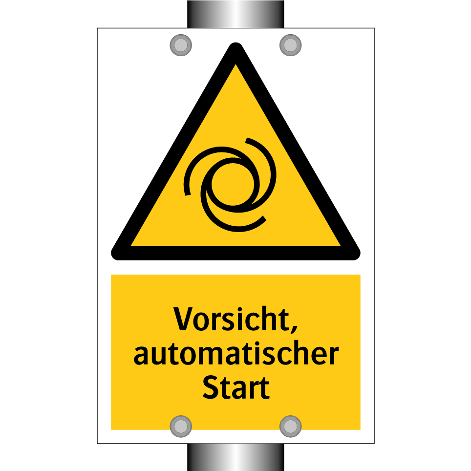 Warnschild mit dem Text Vorsicht, automatischer Start