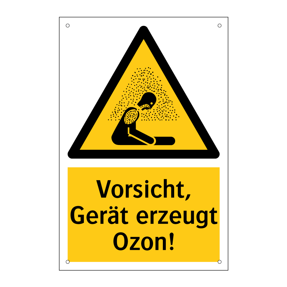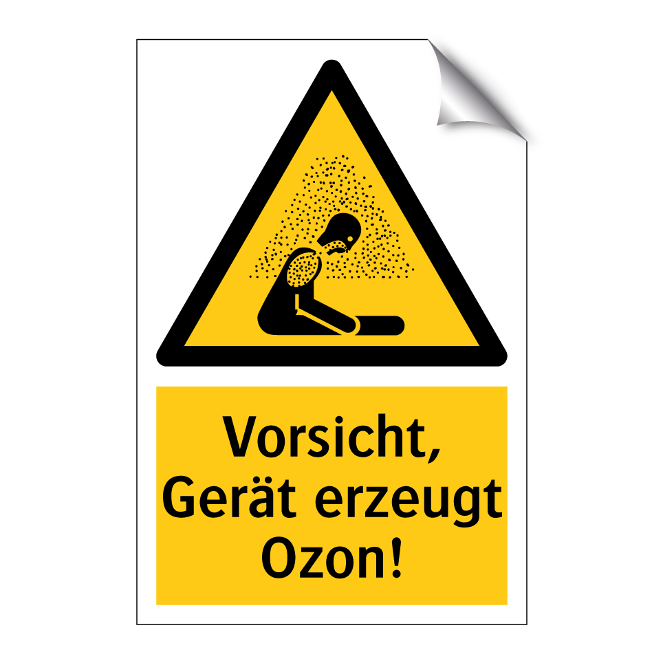 Warnschild mit dem Text Vorsicht, Gerät erzeugt Ozon!