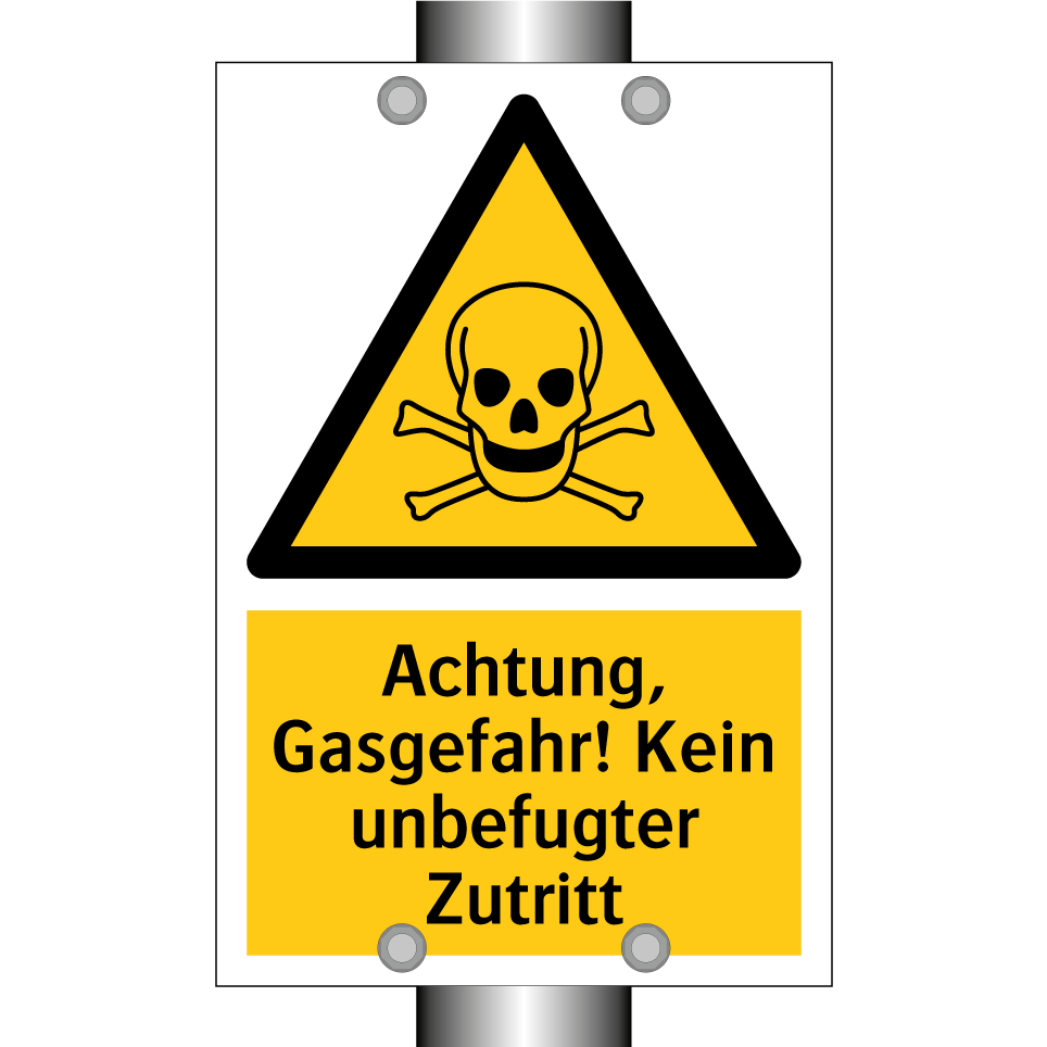 Warnschild mit dem Text Achtung, Gasgefahr! Kein unbefugter Zutritt