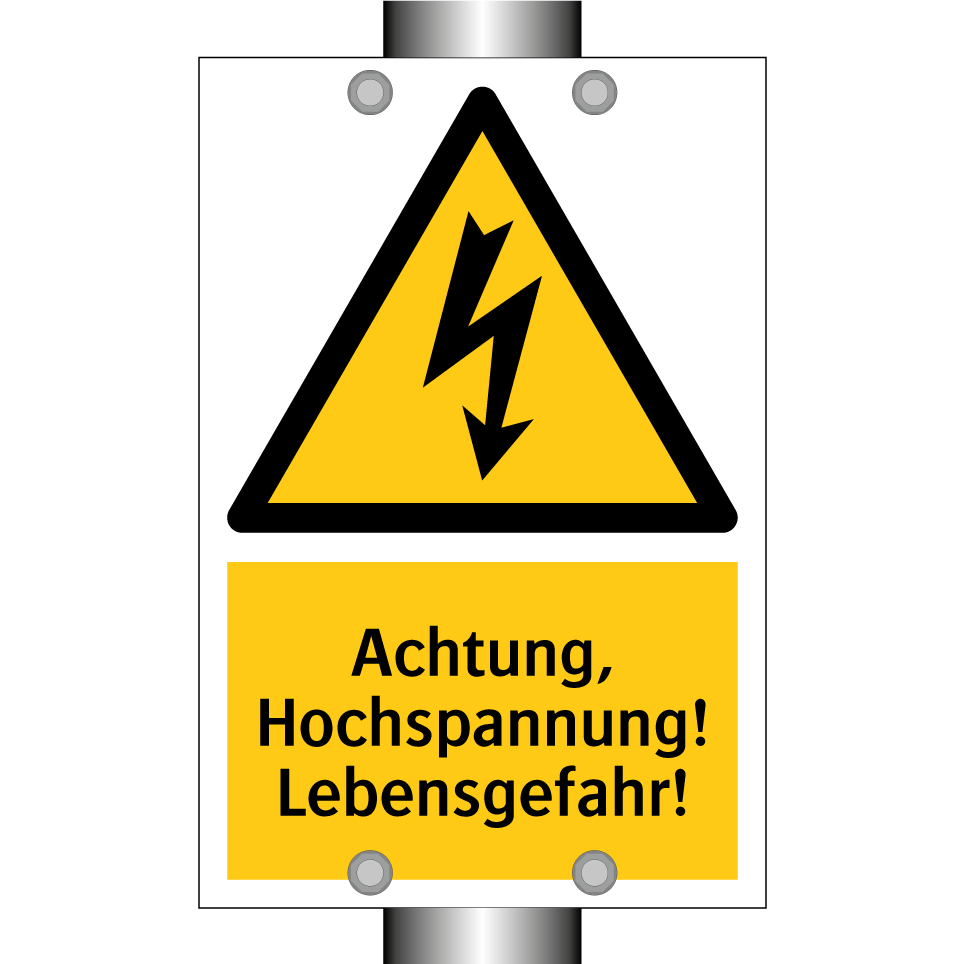 Warnschild mit dem Text Achtung, Hochspannung! Lebensgefahr!