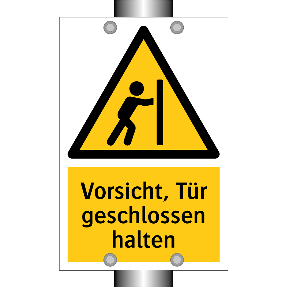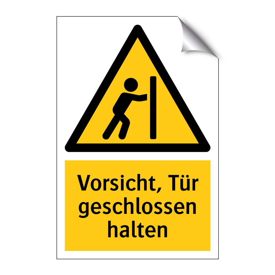Warnschild mit dem Text Vorsicht, Tür geschlossen halten