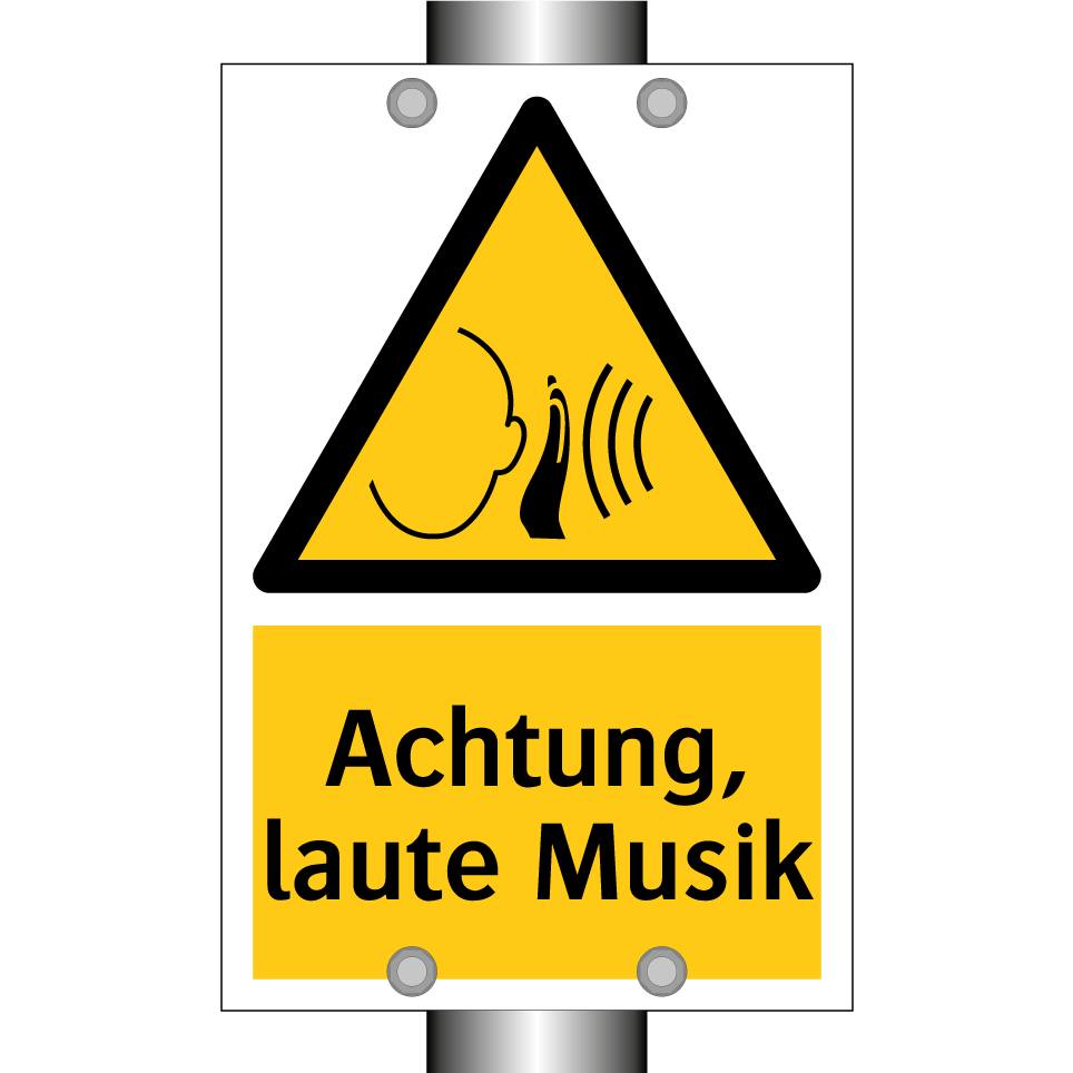 Diese auffällige Warnschild mit gelbem Hintergrund und schwarzer Schrift ist ideal, um auf laute Musik aufmerksam zu machen. Perfekt geeignet für Veranstaltungsorte, Clubs oder Konzerthallen, wo hohe Lautstärken erwartet werden. Platzieren Sie das Warnschild an Eingängen, in Fluren oder in der Nähe von Lautsprechern, um Besucher und Mitarbeiter zu warnen. Die klare Symbolik und der prägnante Text sorgen dafür, dass die Botschaft unmissverständlich ist. Nutzen Sie diese Warnschilder, um die Sicherheit und das Bewusstsein in lärmintensiven Umgebungen zu erhöhen. Ein unverzichtbares Element für jeden Ort, an dem Lärmschutz wichtig ist.