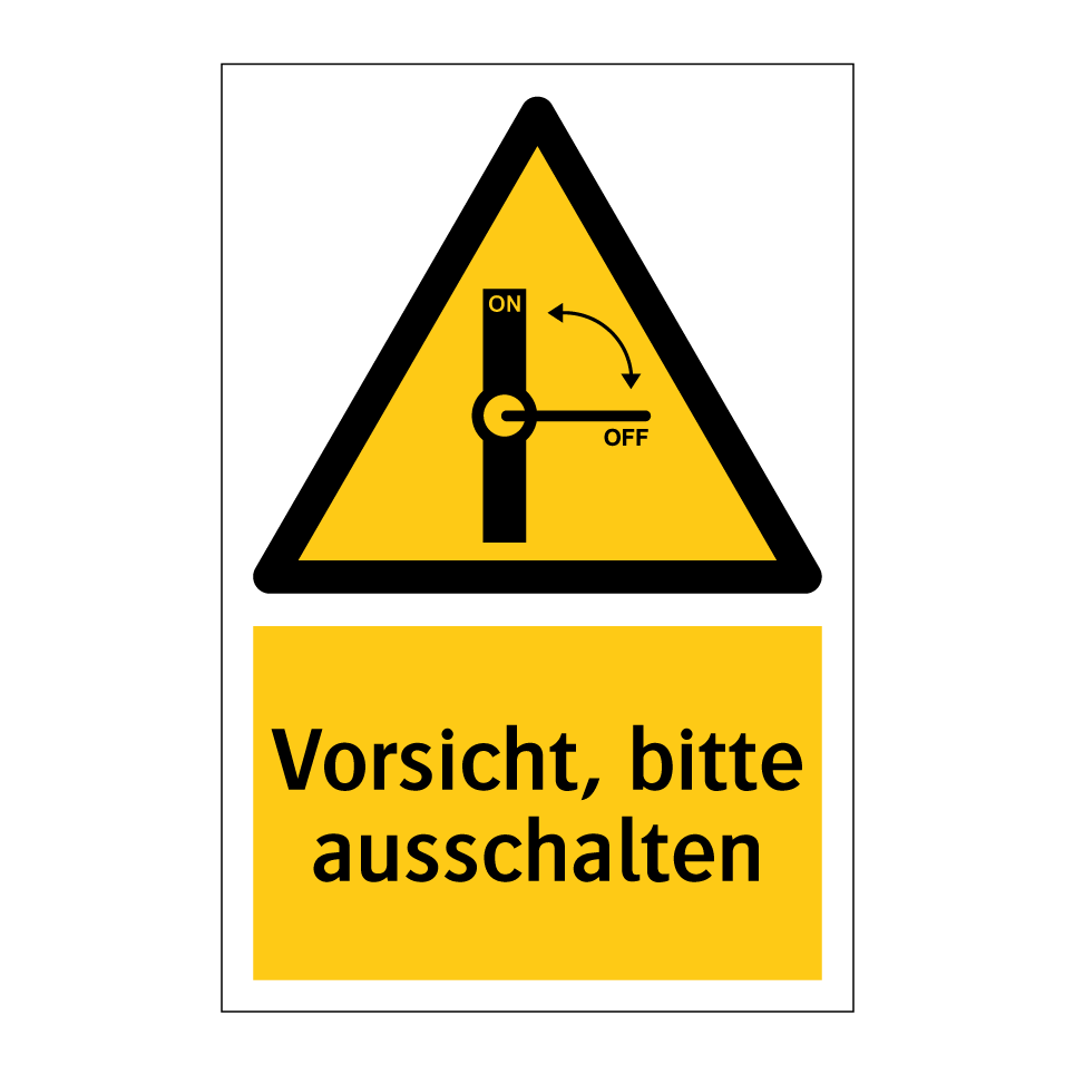 Warnschild mit dem Text Vorsicht, bitte ausschalten