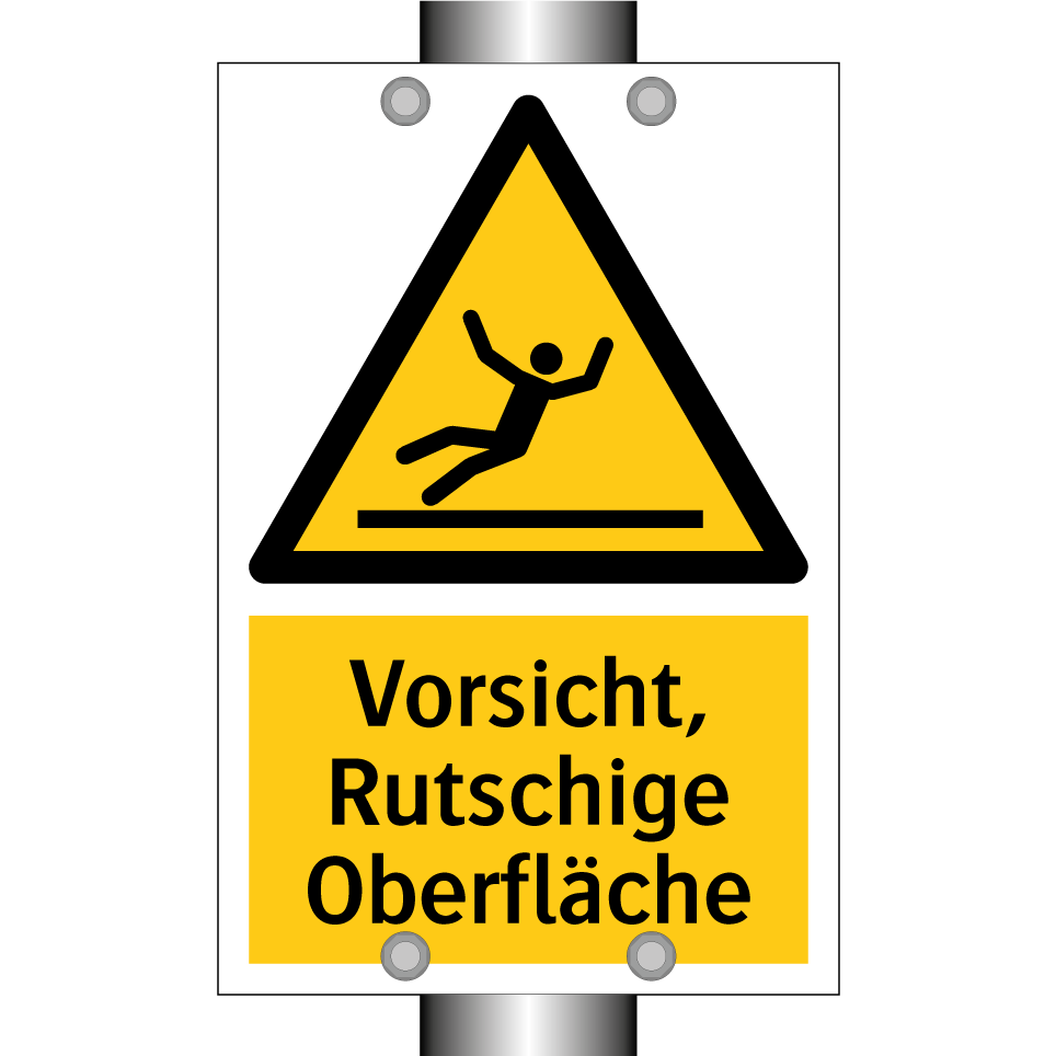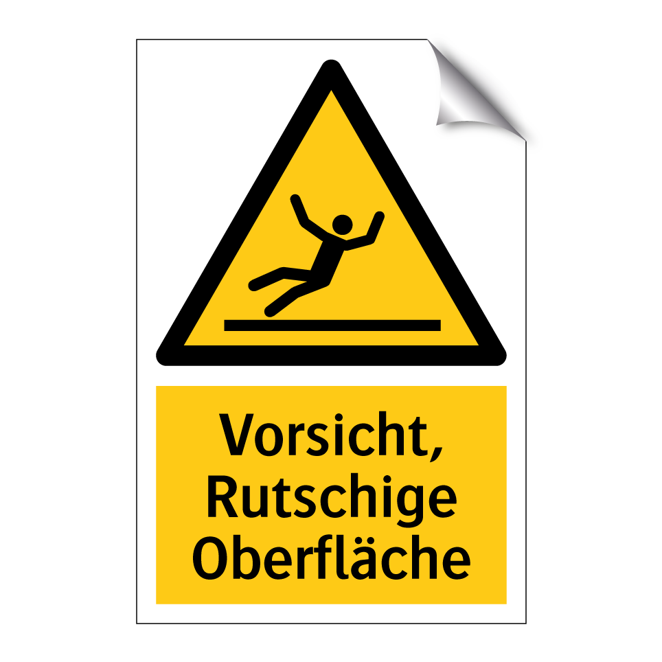 Warnschild mit dem Text Vorsicht, Rutschige Oberfläche